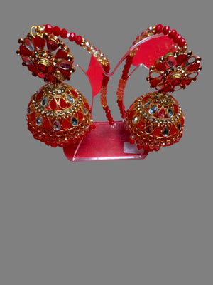 Beautiful earrings and Tikka set. A must have item for your jewellery collection. Stunning looking and attractive pair of Pakistani Earrings. The stylish shape earrings studded with sparkling white colour stones and beads all over are surely the glittering and dazzling fashion accessories.
