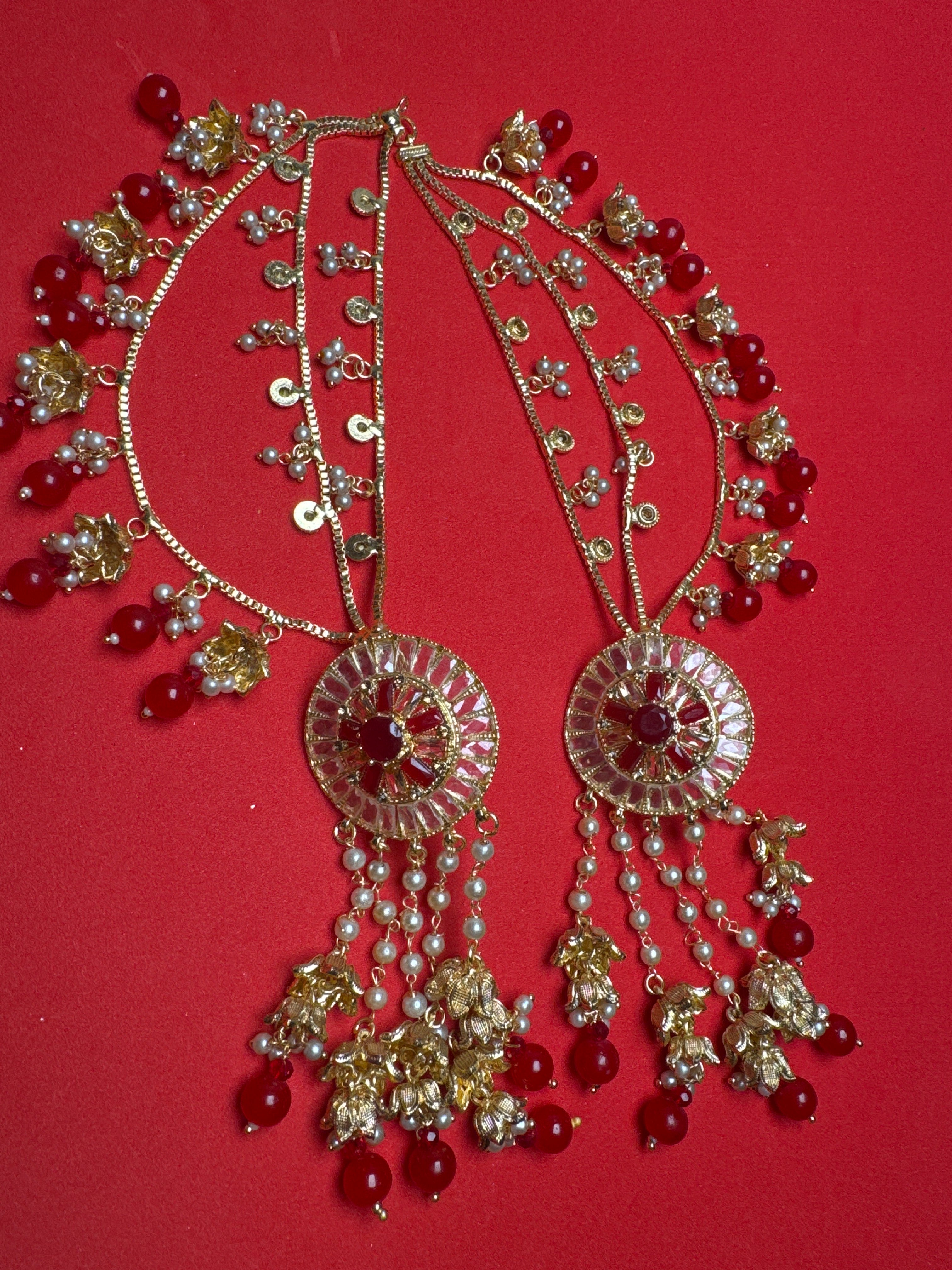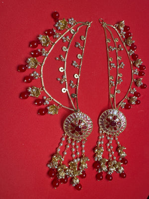 Beautiful earrings and Tikka set. A must have item for your jewellery collection. Stunning looking and attractive pair of Pakistani Earrings. The stylish shape earrings studded with sparkling white colour stones and beads all over are surely the glittering and dazzling fashion accessories.