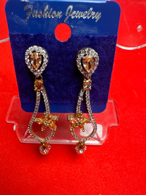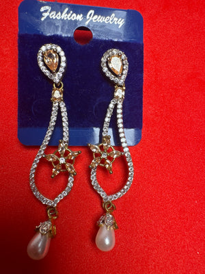 Beautiful earrings. A must have item for your jewellery collection. Stunning looking and attractive pair of Pakistani Earrings. The stylish shape earrings studded with sparkling white colour stones and beads all over are surely the glittering and dazzling fashion accessories.