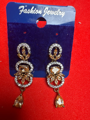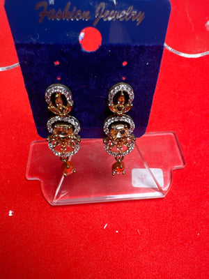 Beautiful earrings. A must have item for your jewellery collection. Stunning looking and attractive pair of Pakistani Earrings. The stylish shape earrings studded with sparkling white colour stones and beads all over are surely the glittering and dazzling fashion accessories.