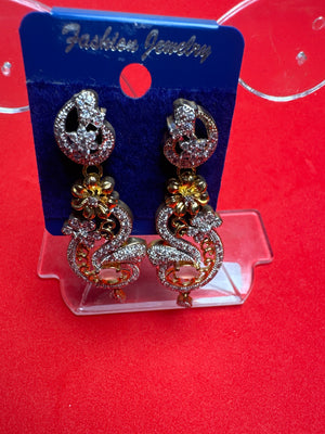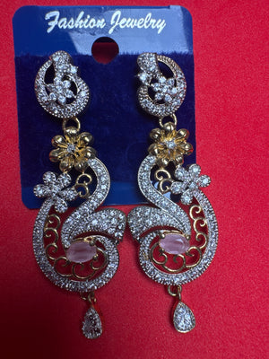 Beautiful earrings. A must have item for your jewellery collection. Stunning looking and attractive pair of Pakistani Earrings. The stylish shape earrings studded with sparkling white colour stones and beads all over are surely the glittering and dazzling fashion accessories.