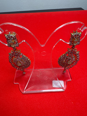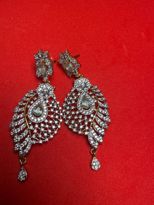Beautiful earrings. A must have item for your jewellery collection. Stunning looking and attractive pair of Pakistani Earrings. The stylish shape earrings studded with sparkling white colour stones and beads all over are surely the glittering and dazzling fashion accessories.
