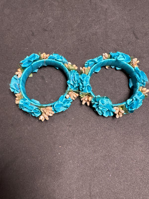 Aqua Flower Kara Set (SOLD AS PAIR) Handcrafted Bridal Jewellery for Bride & Bridesmaids Perfect for Mehndi & Any Event