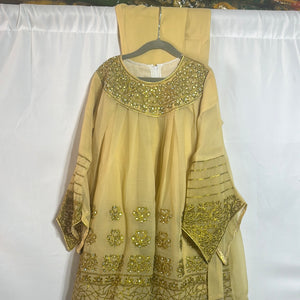 Areeba's Classic girls chiffon frock Set 3 PCS with heavy embroidery on shirt