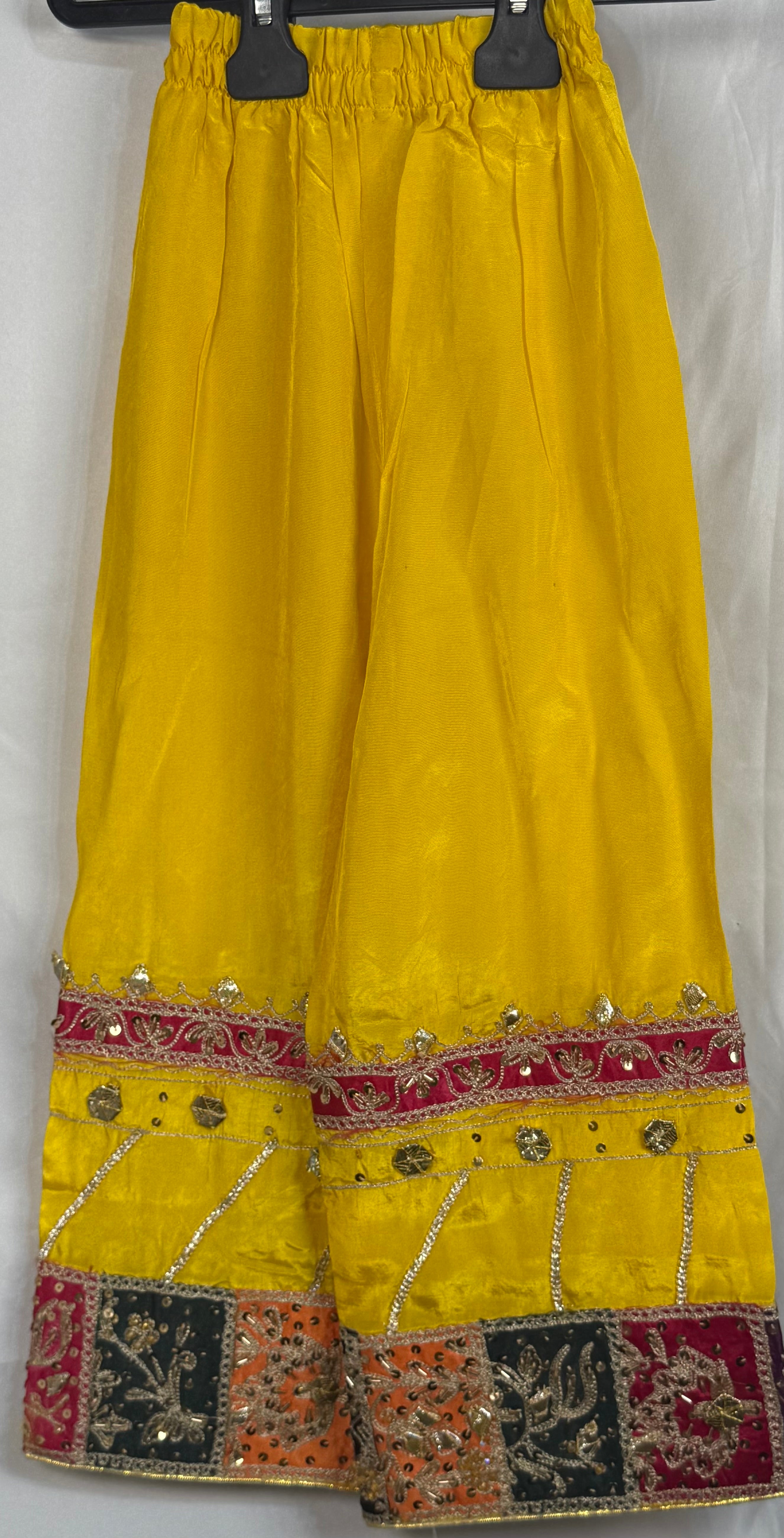 Girls Mehndi Suit Three Piece Embellished Work Pakistani Outfit with Embroidered Shirt & Plazoo Trouser for Sensitive Skin