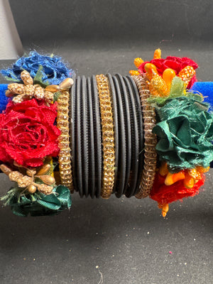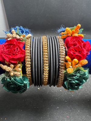 Choori and flower bangles mixed to create wonderful set to compliment your dress for any function.