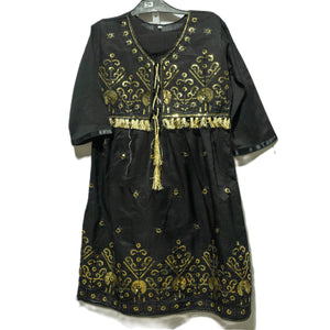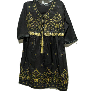 Upgrade your style game with our black cotton frock featuring intricate sequence work. Made from high-quality cotton, this frock is not only stylish but also comfortable to wear. Perfect for any occasion, this piece will make you stand out from the crowd. Upgrade your wardrobe today!
