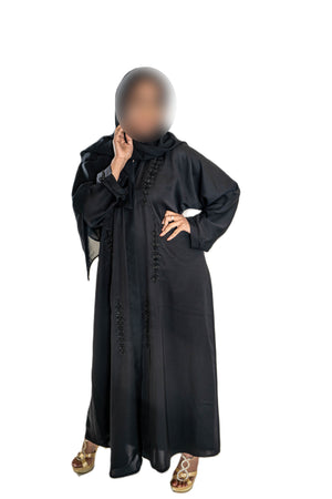 Experience the refined beauty of the Black Cut Dana Abaya. Created with meticulous care and precise craftsmanship, this elegant black abaya showcases a stunning cut dana pattern that radiates sophistication and fashion. Crafted from premium materials, it provides both comfort and versatility to elevate any attire.