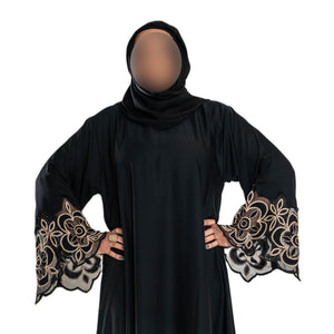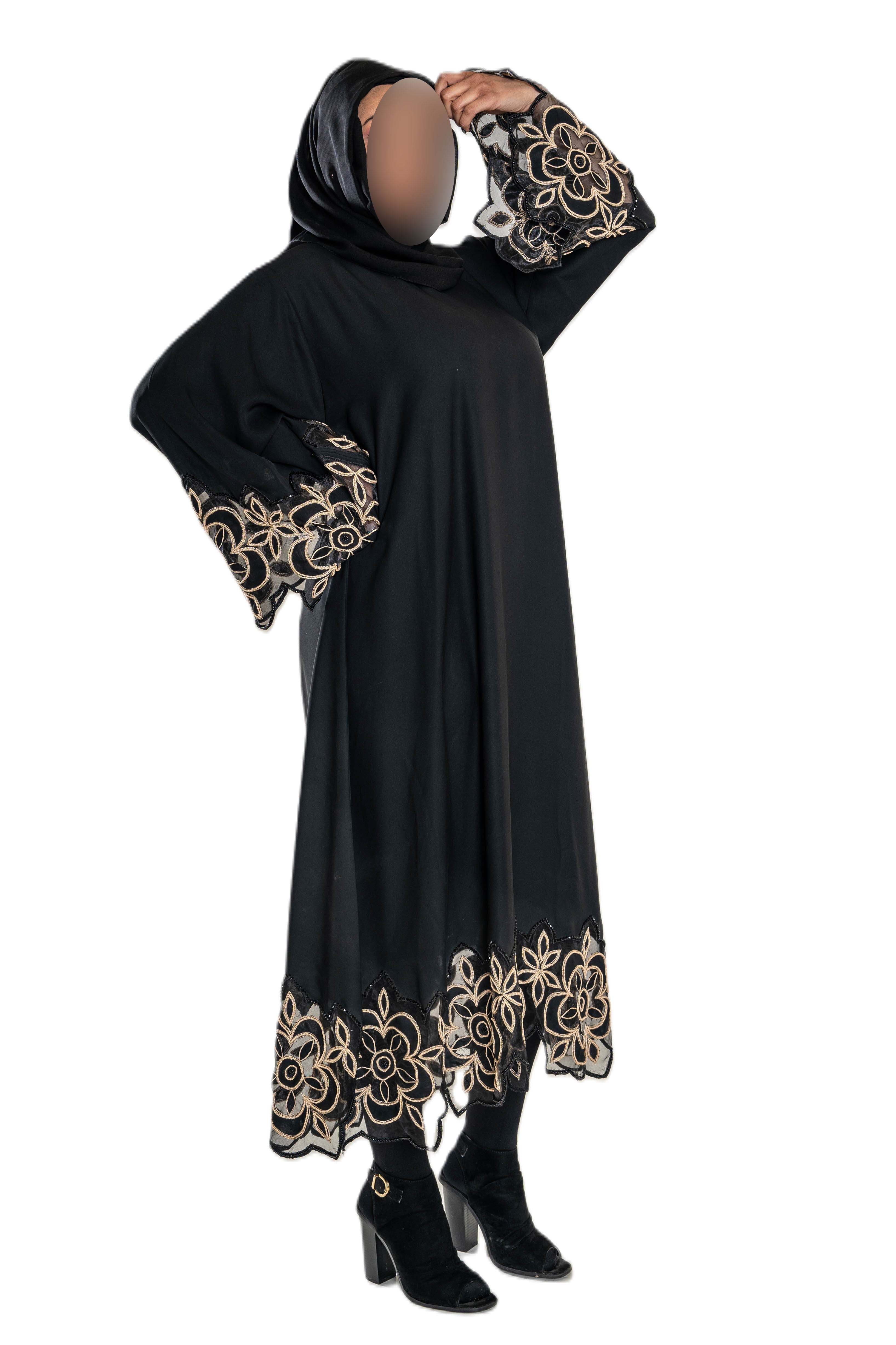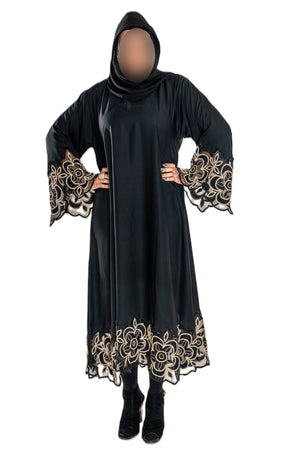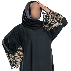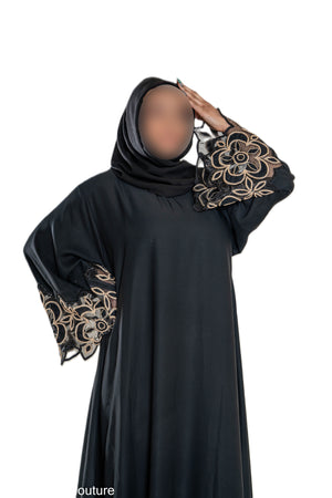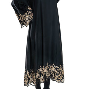 Black Cut Work Abaya with Intricate Design on Daman and Sleeves High-Quality Materials Stylish and Comfortable Versatile Wardrobe Piece