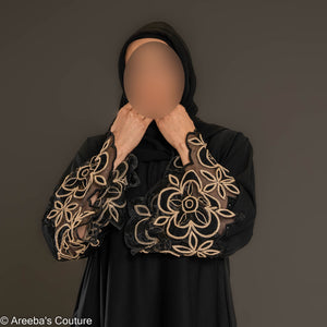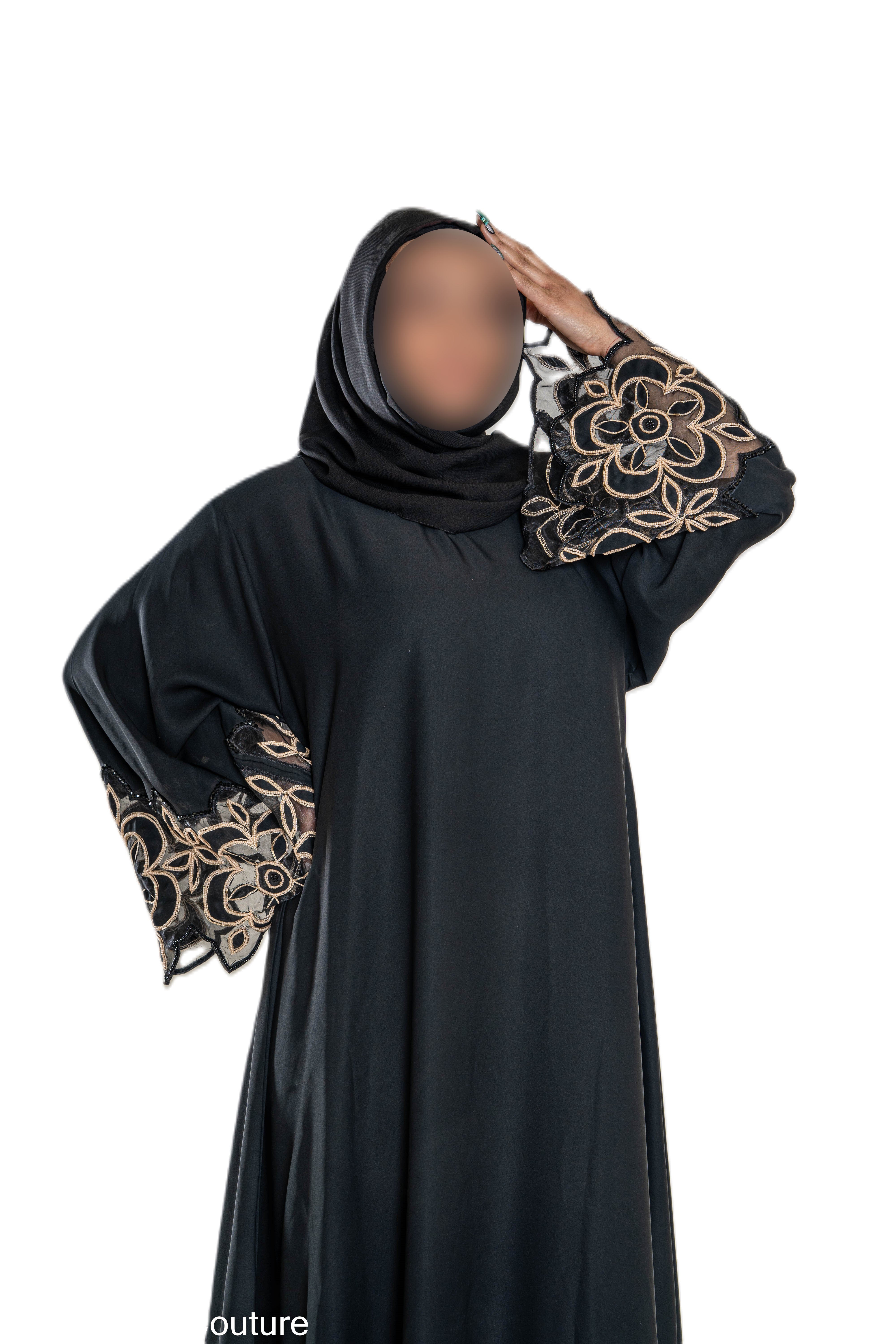 Our Black Cut Work Abaya offers effortless elegance with its intricate cut work design on both the daman and sleeves. Made with high-quality materials, this abaya is both stylish and comfortable. Elevate your wardrobe with this versatile piece.