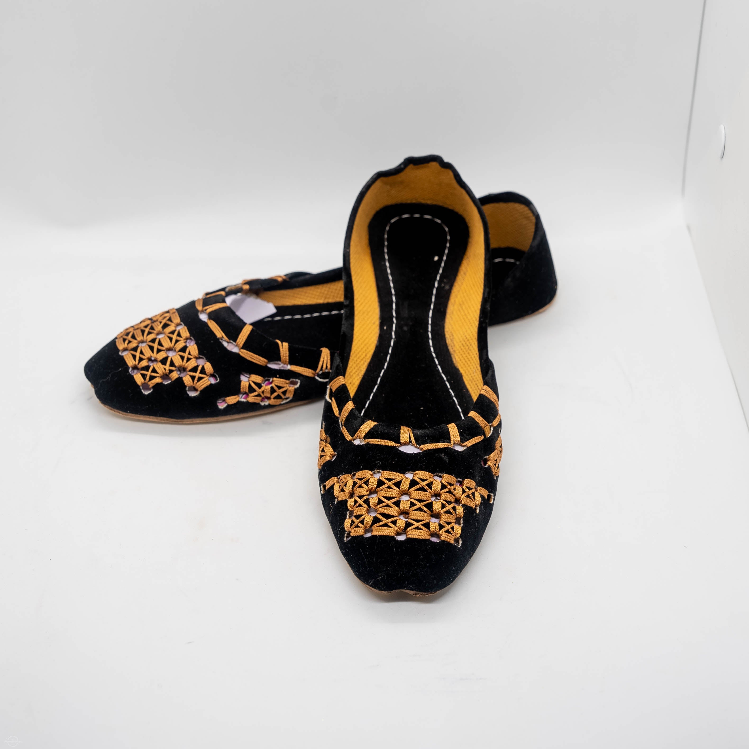 Black Embroidered Khussa Traditional Slip-on Shoes with Elegant Embroidery and Comfortable Sheet Sole for All-day Wear