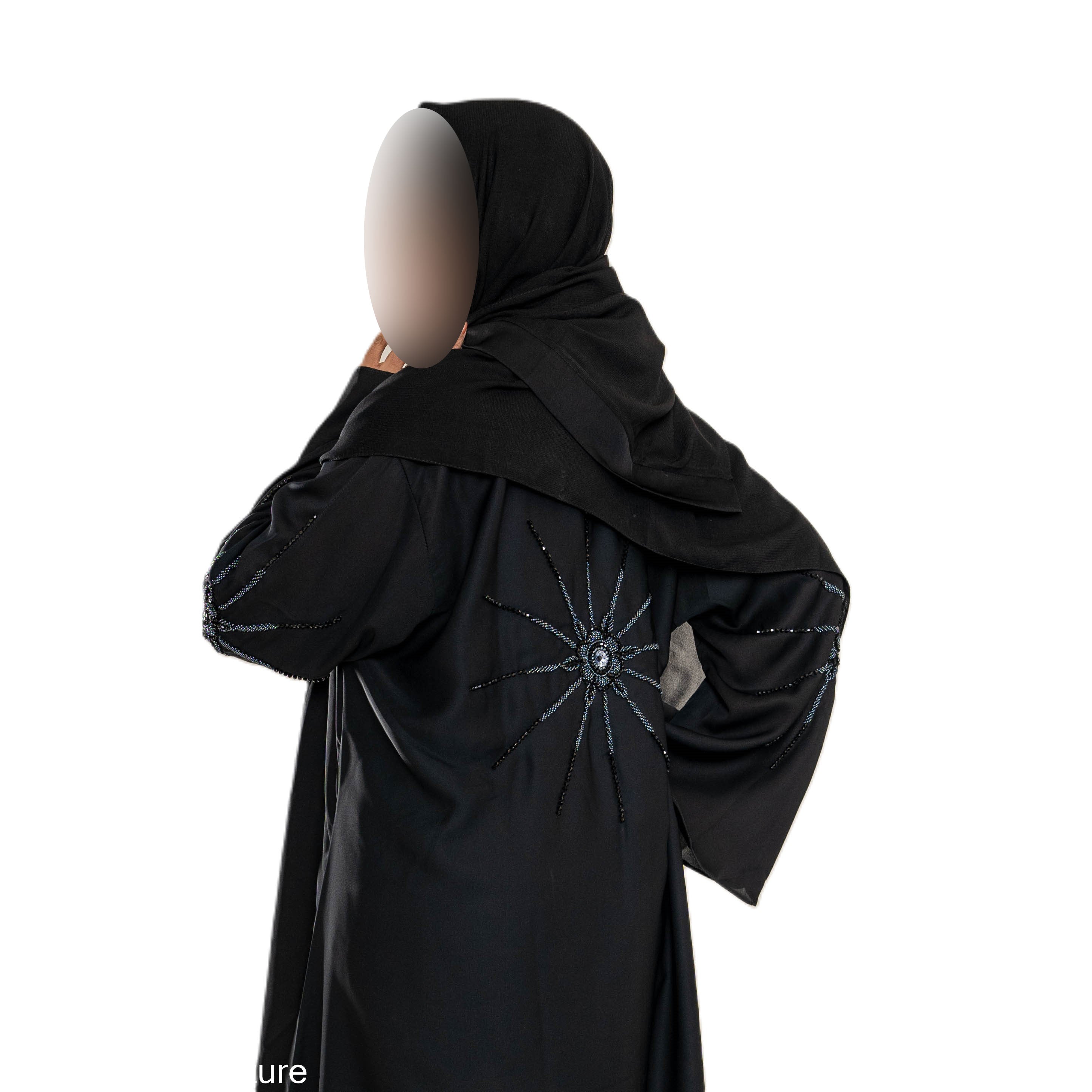 Black on Black Cut Dana Abaya with Exquisite Embellishments for Timeless Comfort and Fashion