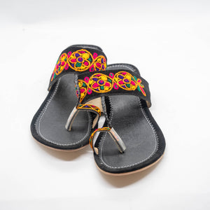 Black Sindhi embroidered kolapuri chapal Sandal Footwear