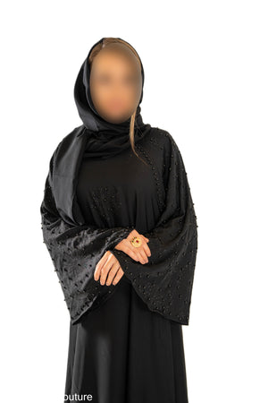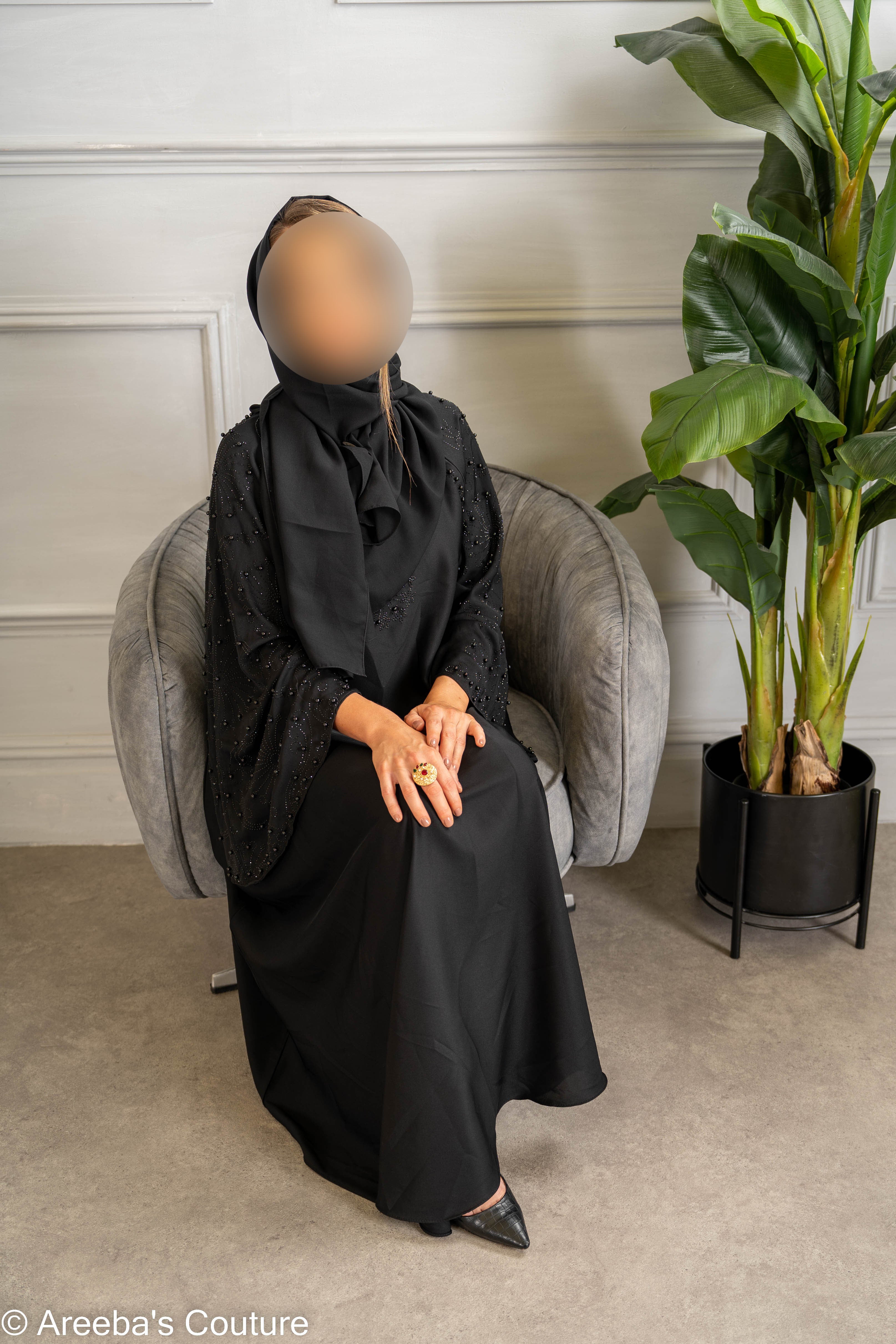 Black Thunder Beaded Abaya with Elegant Beading and Classic Fit for Everyday Wear