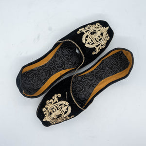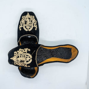 Black Velvet Embroidered Khussa - Handmade Luxury Slip-On Shoes with Delicate Gold Embroidery for Timeless Elegance