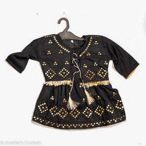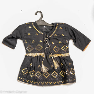 This black frock set with golden embroidery accents exudes elegance and sophistication. Made with high-quality materials and expert craftsmanship, it offers a timeless and luxurious look. Perfect for formal occasions or special events, this frock set will make you feel confident and stylish.