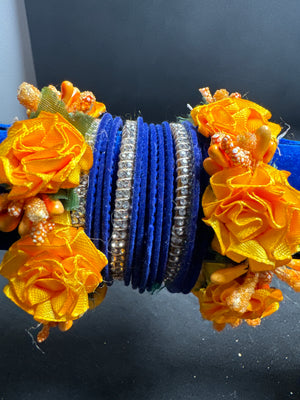 Choori and flower bangles mixed to create wonderful set to compliment your dress for any function.