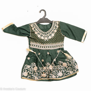 Areeba's Couture Bottle Green Cotton Frock Set for Little Girls Soft High-Quality Comfortable Fit Timeless Design Versatile for Play or Special Occasions