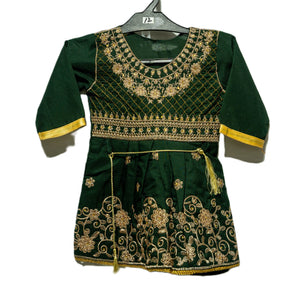 Bottle Green Cotton Frock Set - 100% Cotton Soft & Breathable Fabric for All-Day Comfort Elegant Design Perfect for Any Occasion