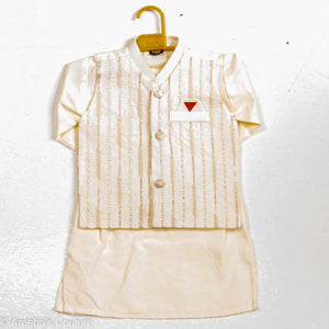 Boys Off-white (Boski colour) shalwar suit with embroidered waistcoat