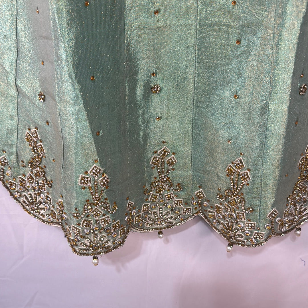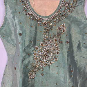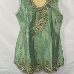 Girls sage green outfit with embellishments comes with gold trouser