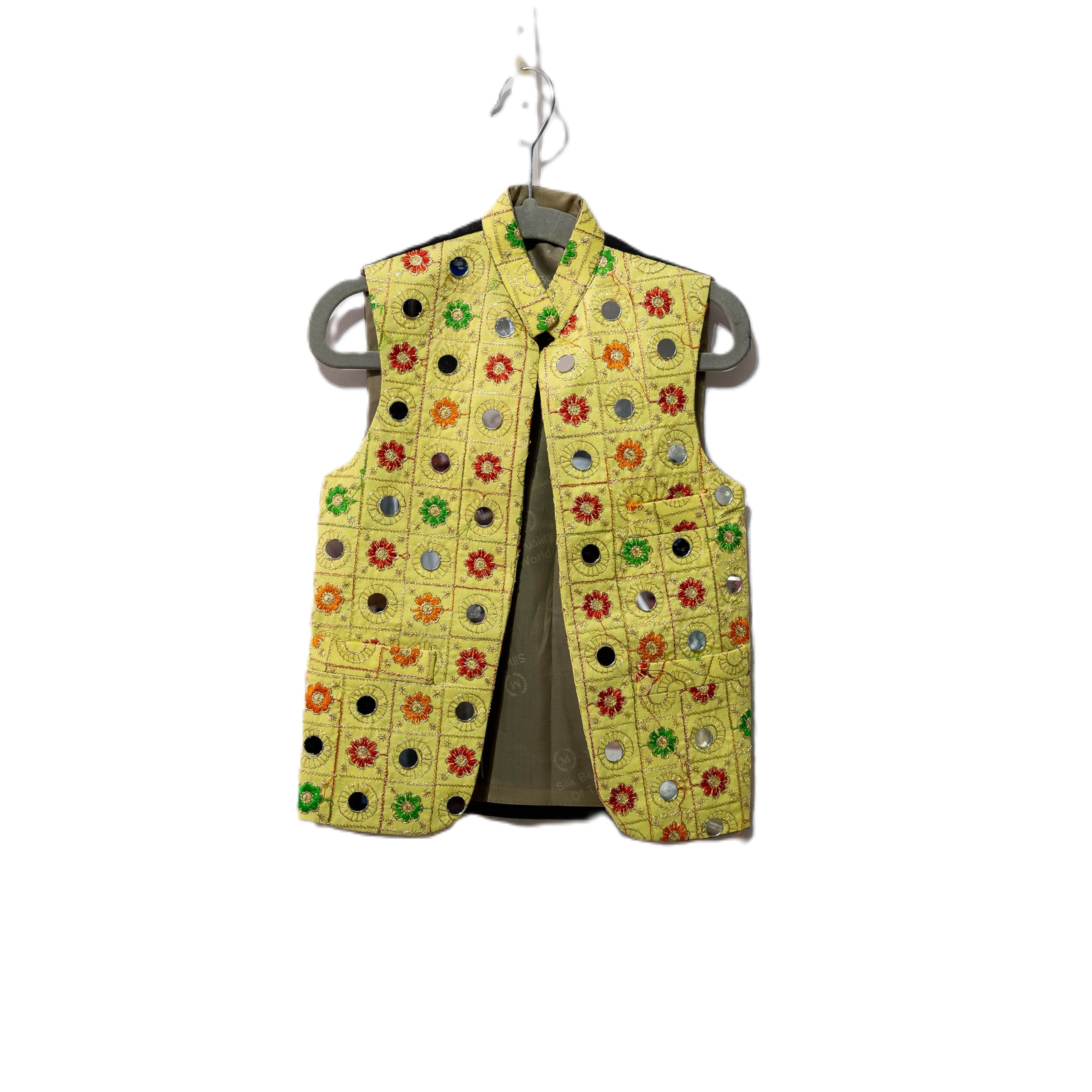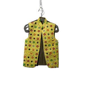 This boys waist coat, featuring intricate embroidery, adds a touch of sophistication to any outfit. A perfect addition to your child's wardrobe, this waist coat offers a stylish look while providing warmth and comfort. Made with quality materials, it guarantees long-lasting wear.