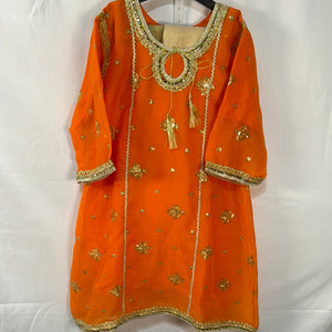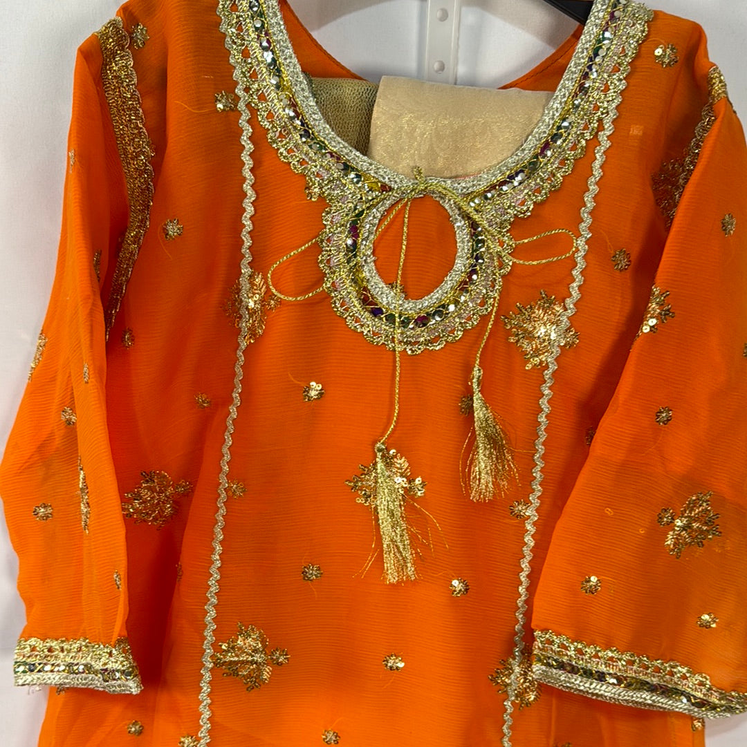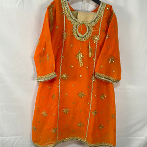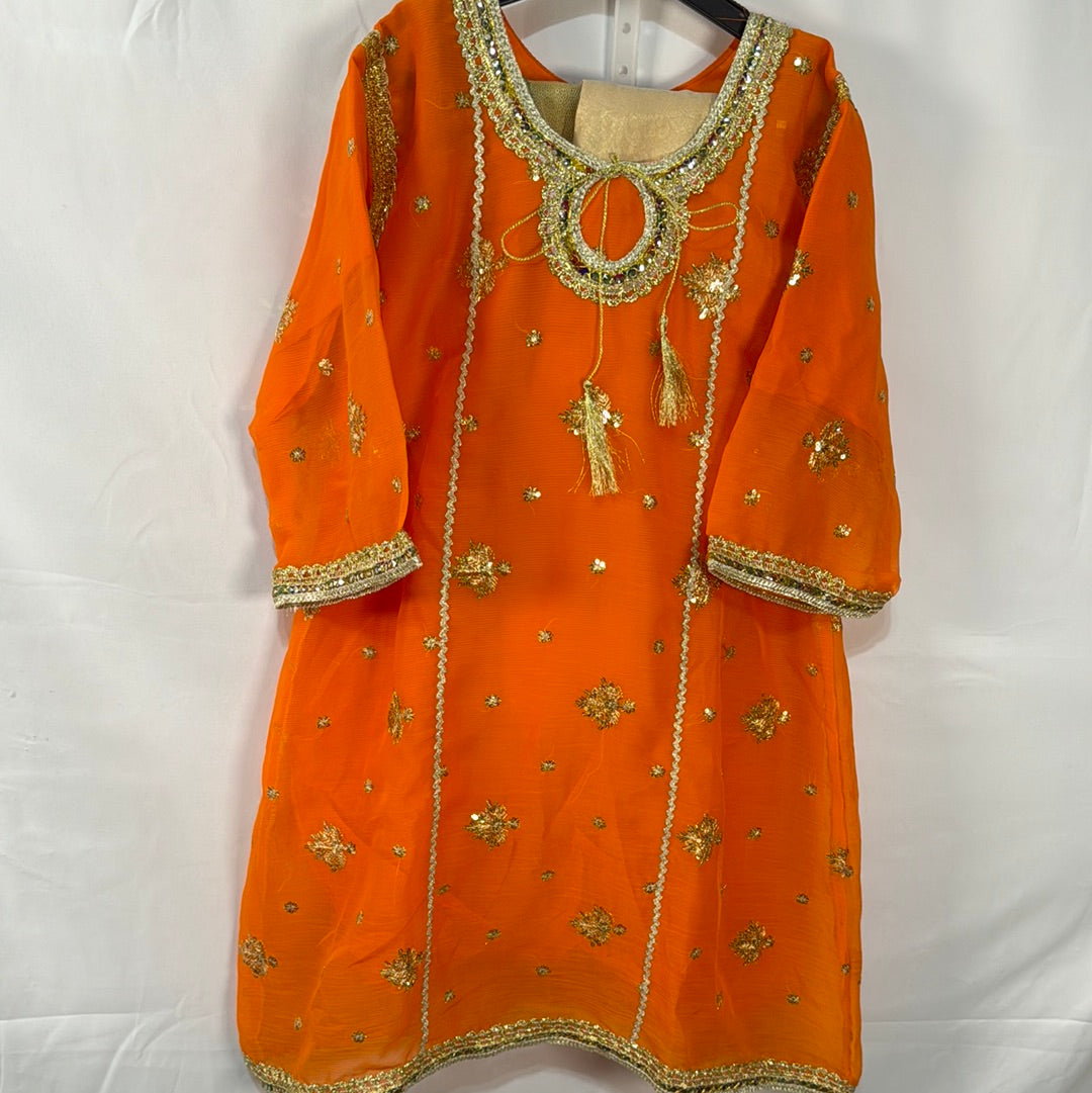 Girls chiffon embroidery on shirt and plain gold trouser , perfect for any occasion