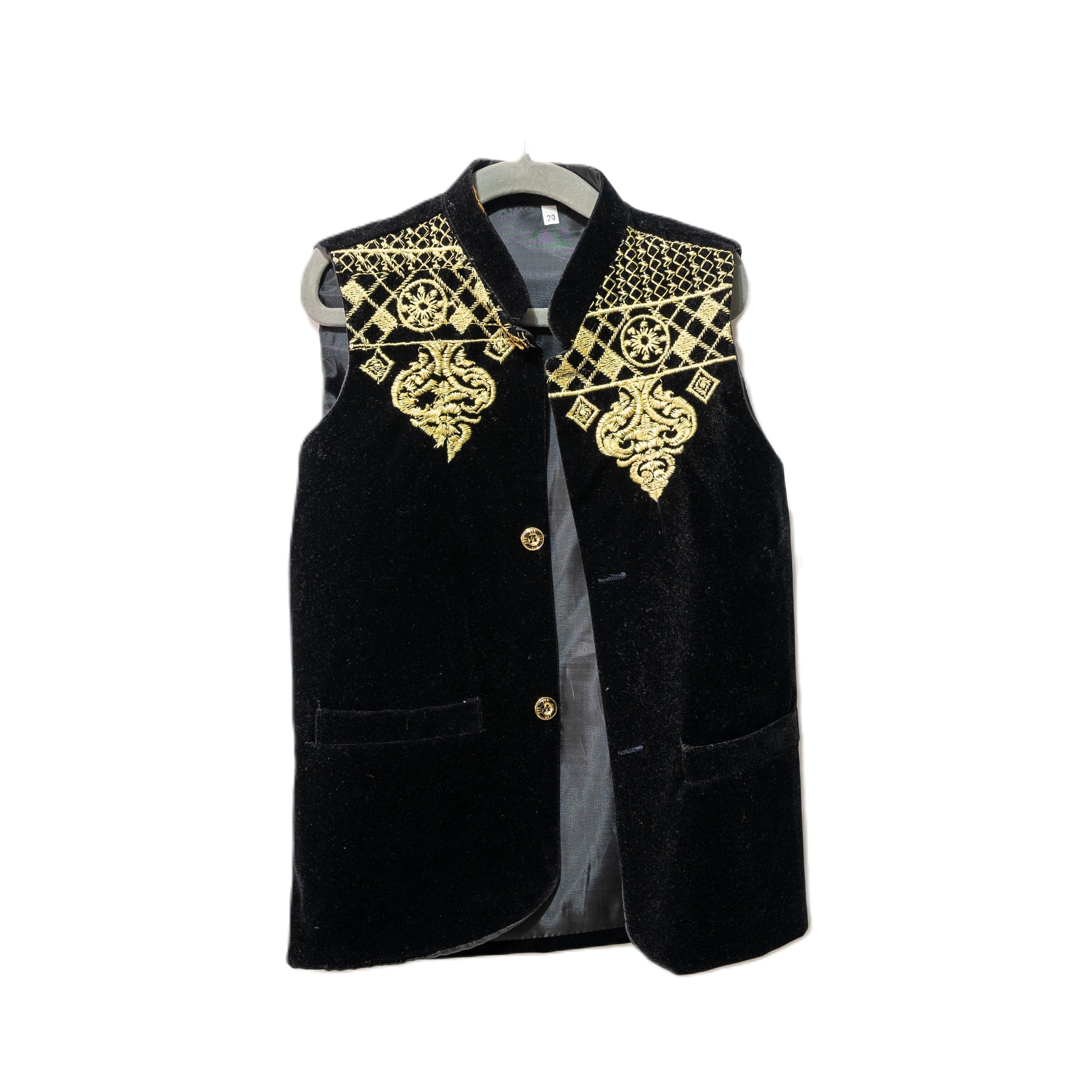 This boys' waistcoat is the perfect addition to any formal ensemble. Made of luxurious velvet in classic black, it adds a touch of sophistication to any outfit. With its versatile design and comfortable fit, it's a must-have for any young gentleman. Elevate any occasion with this stylish and timeless waistcoat.