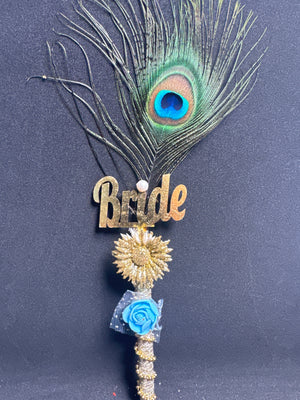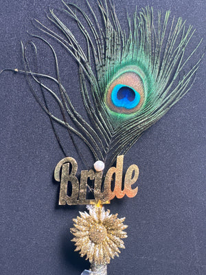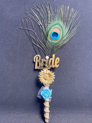 Bridal Nikah Pen D42 - Decorated Peacock Feather Bride Pen for Signing Nikah Documents Matching Bridal Attire