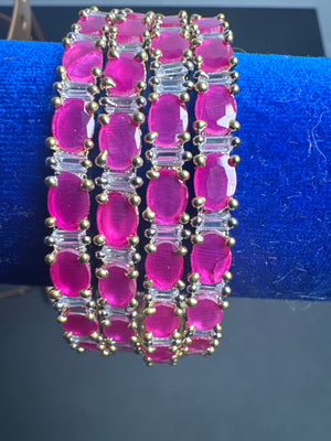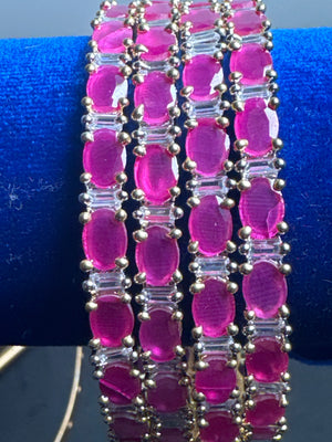 Step out in exquisite style and adorn your wrist with our beautiful Kara golden and rose gold ruby squares. Each bangle features a combination of gold and rose gold, with square shaped faux diamond inserts for a timeless, elegant look. Put your best foot forward in these stunning and glamorous bangles. Ready to be admired?