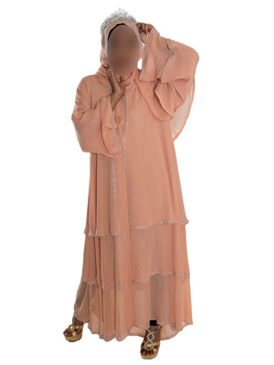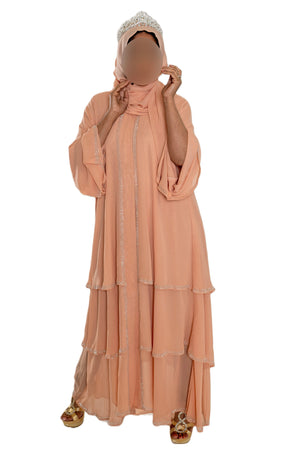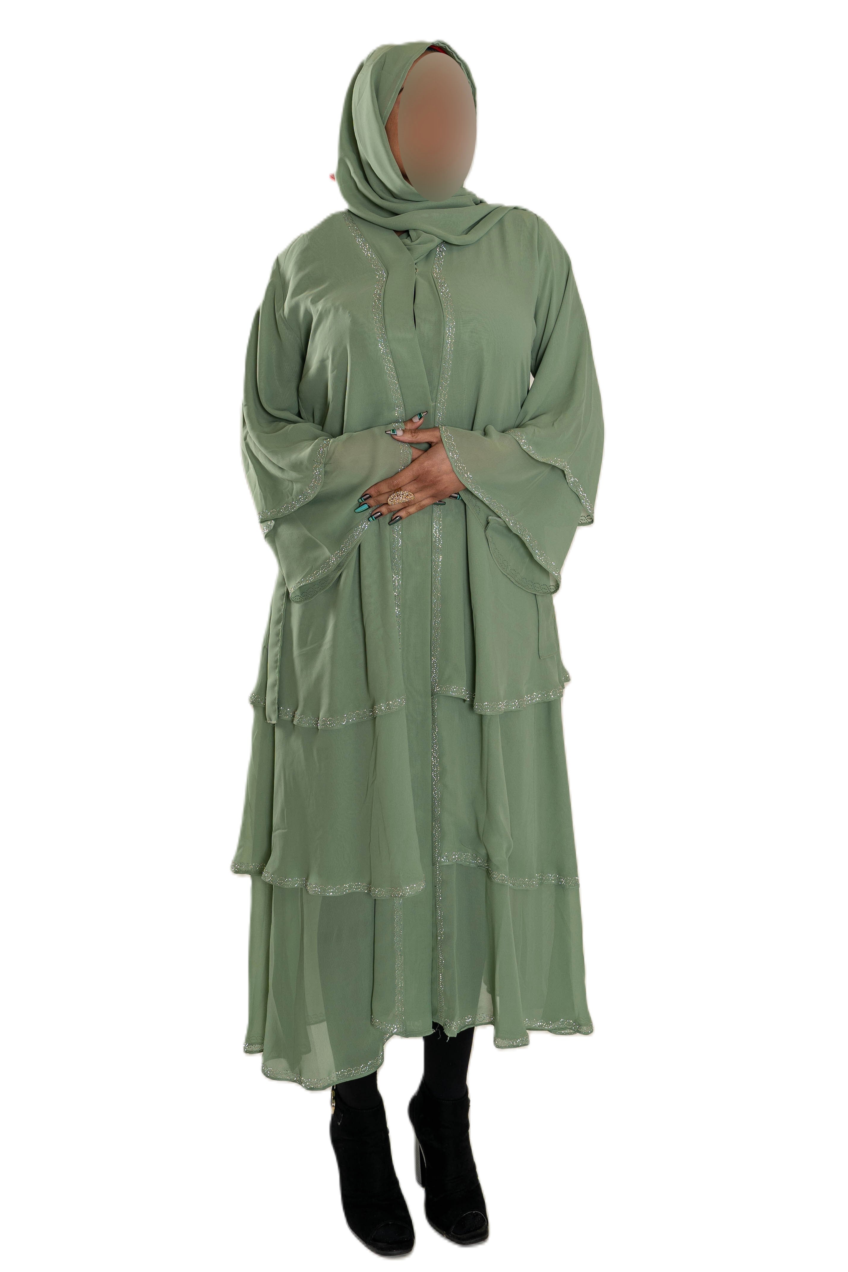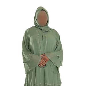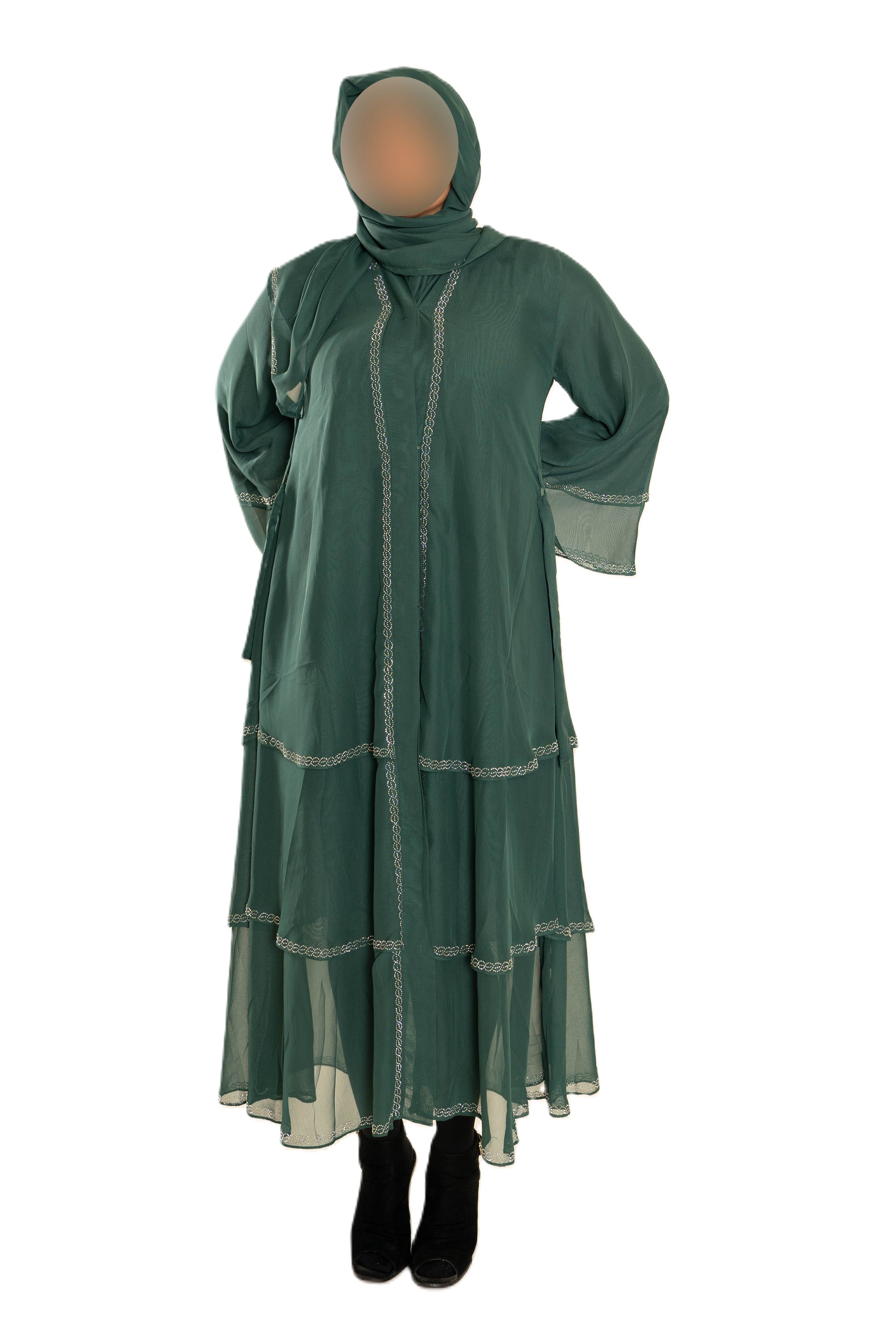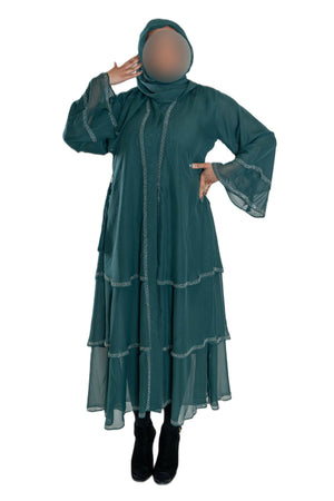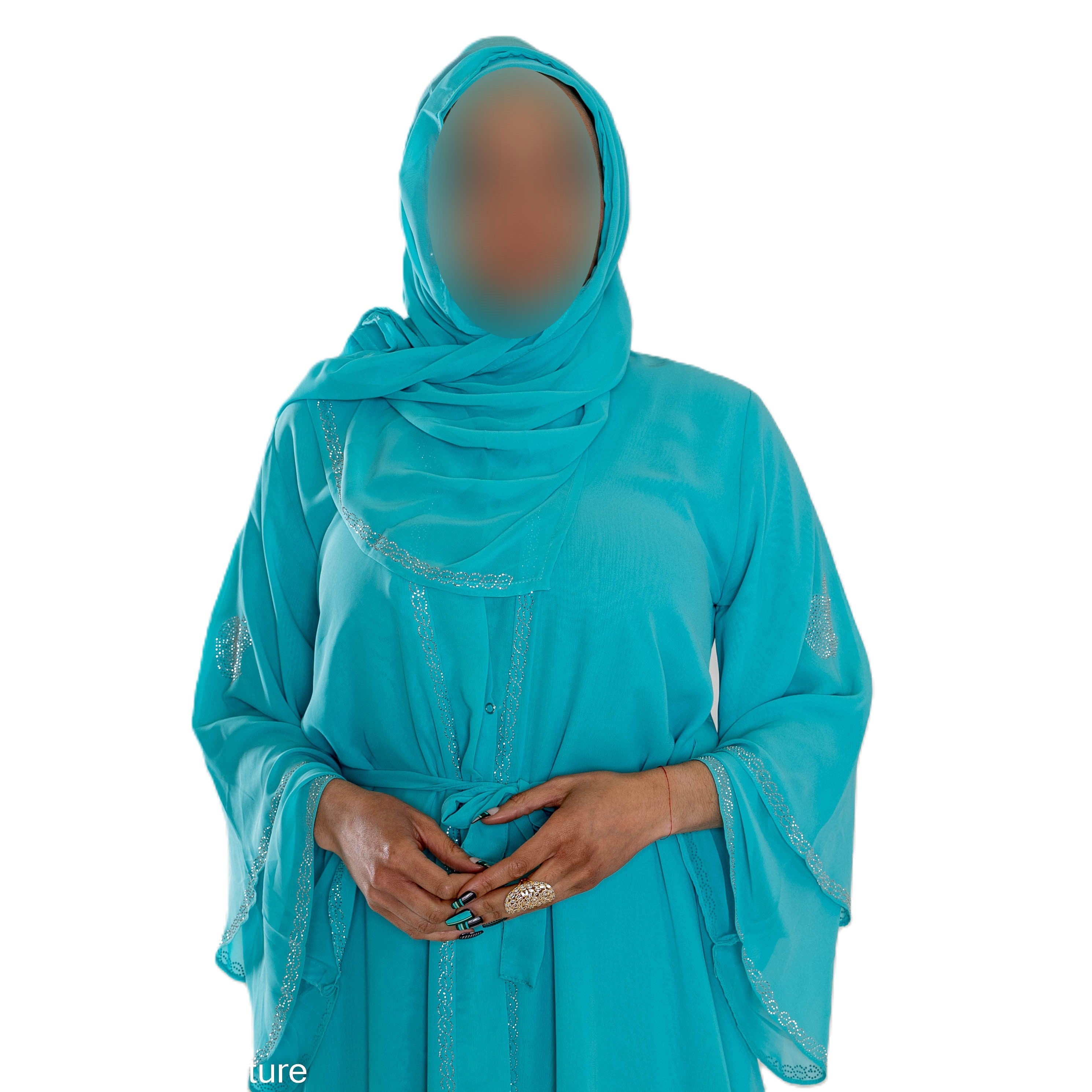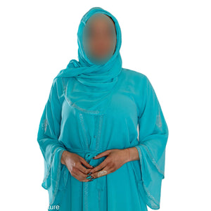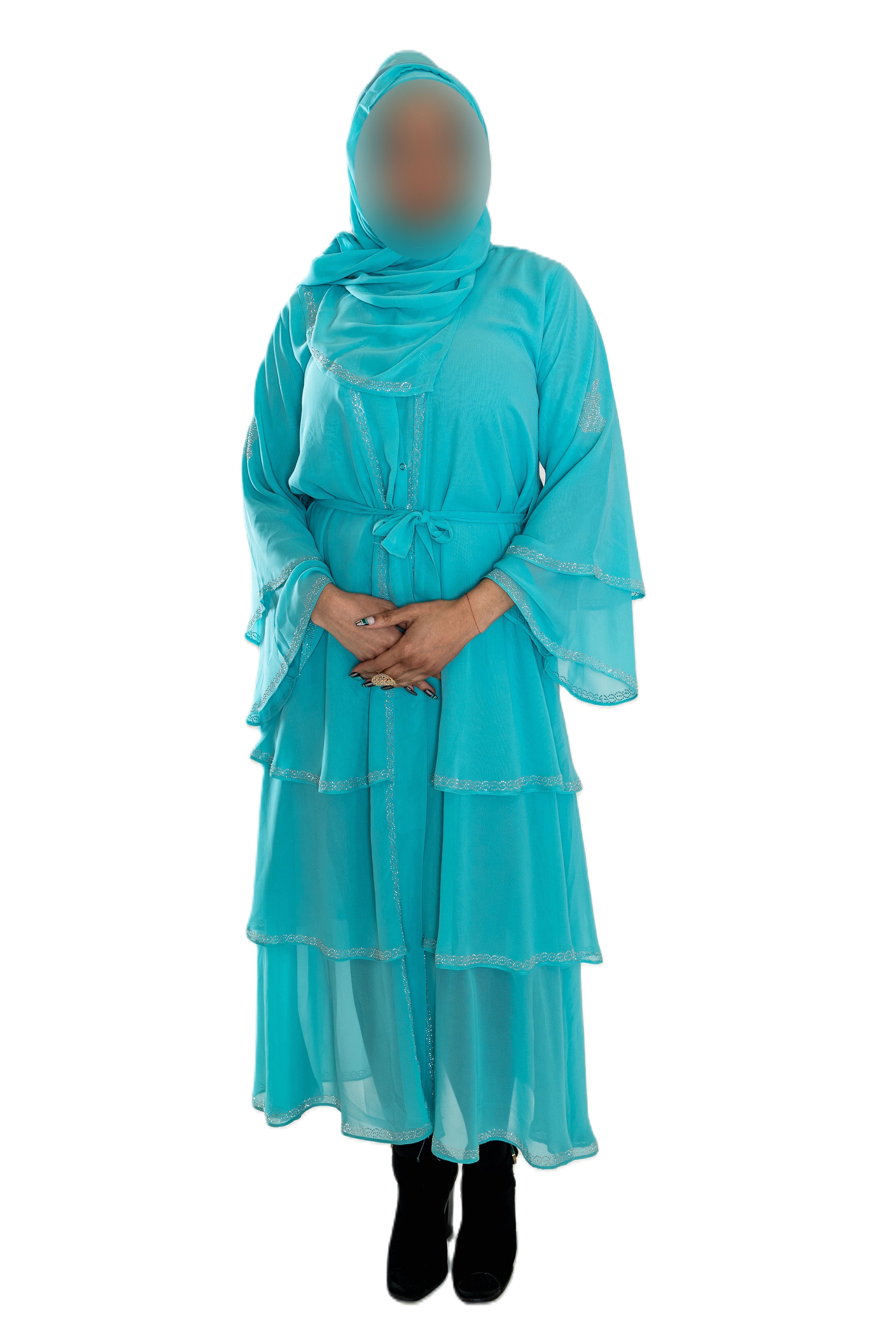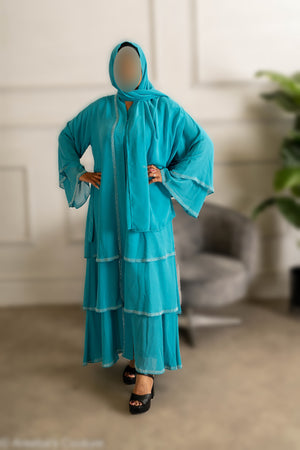 Chiffon Triple Layered Abaya in Vibrant Teal for Elegance and Comfort