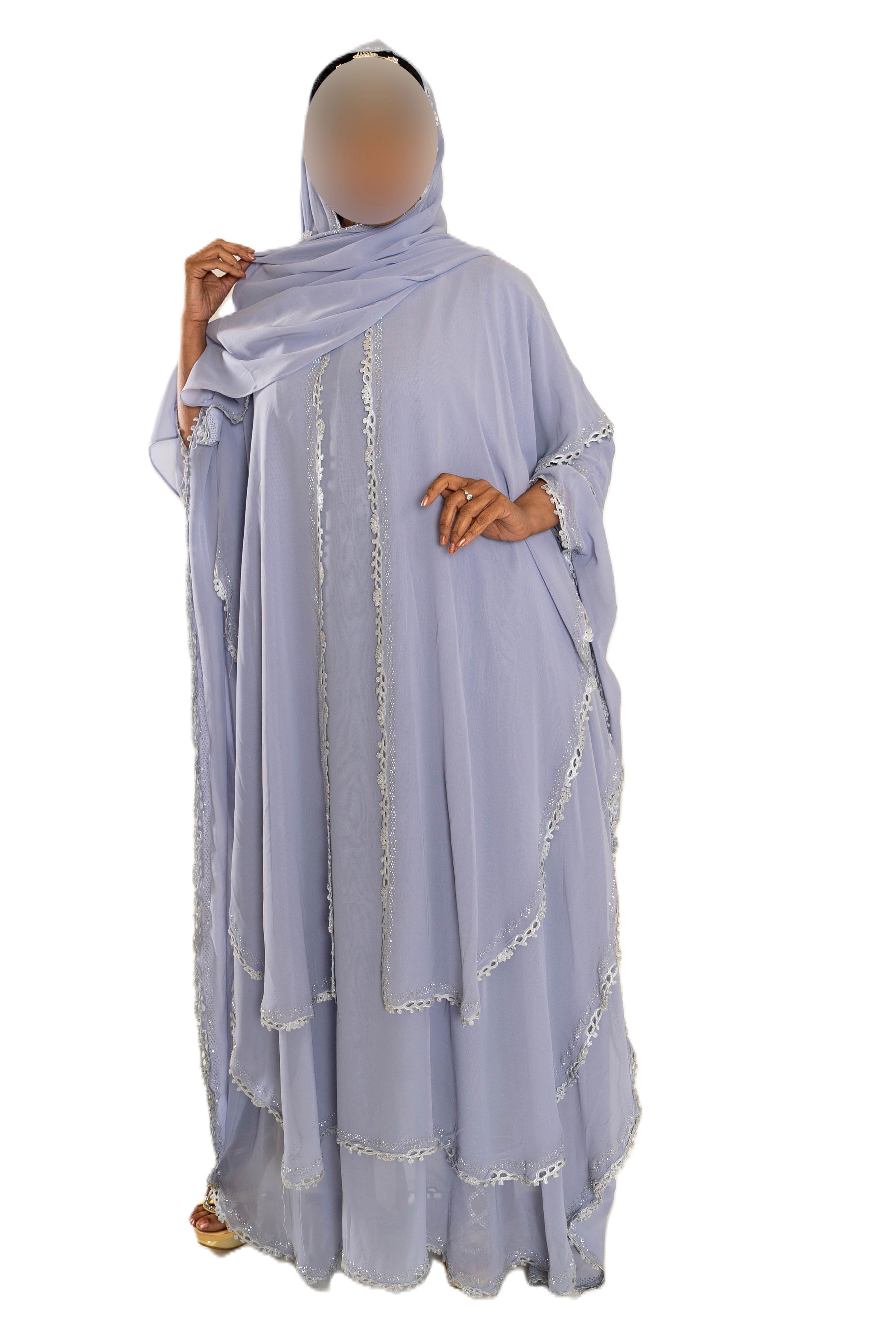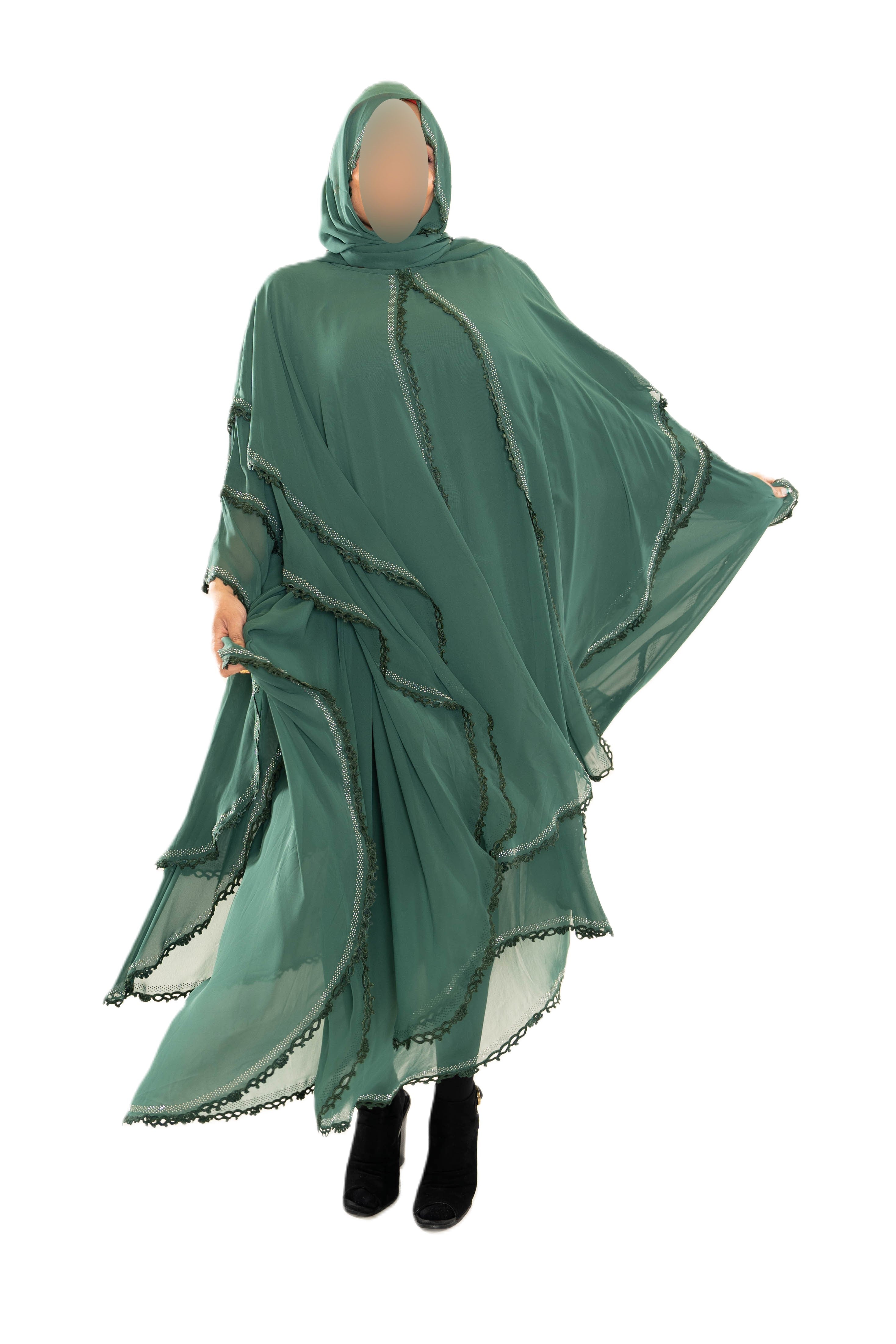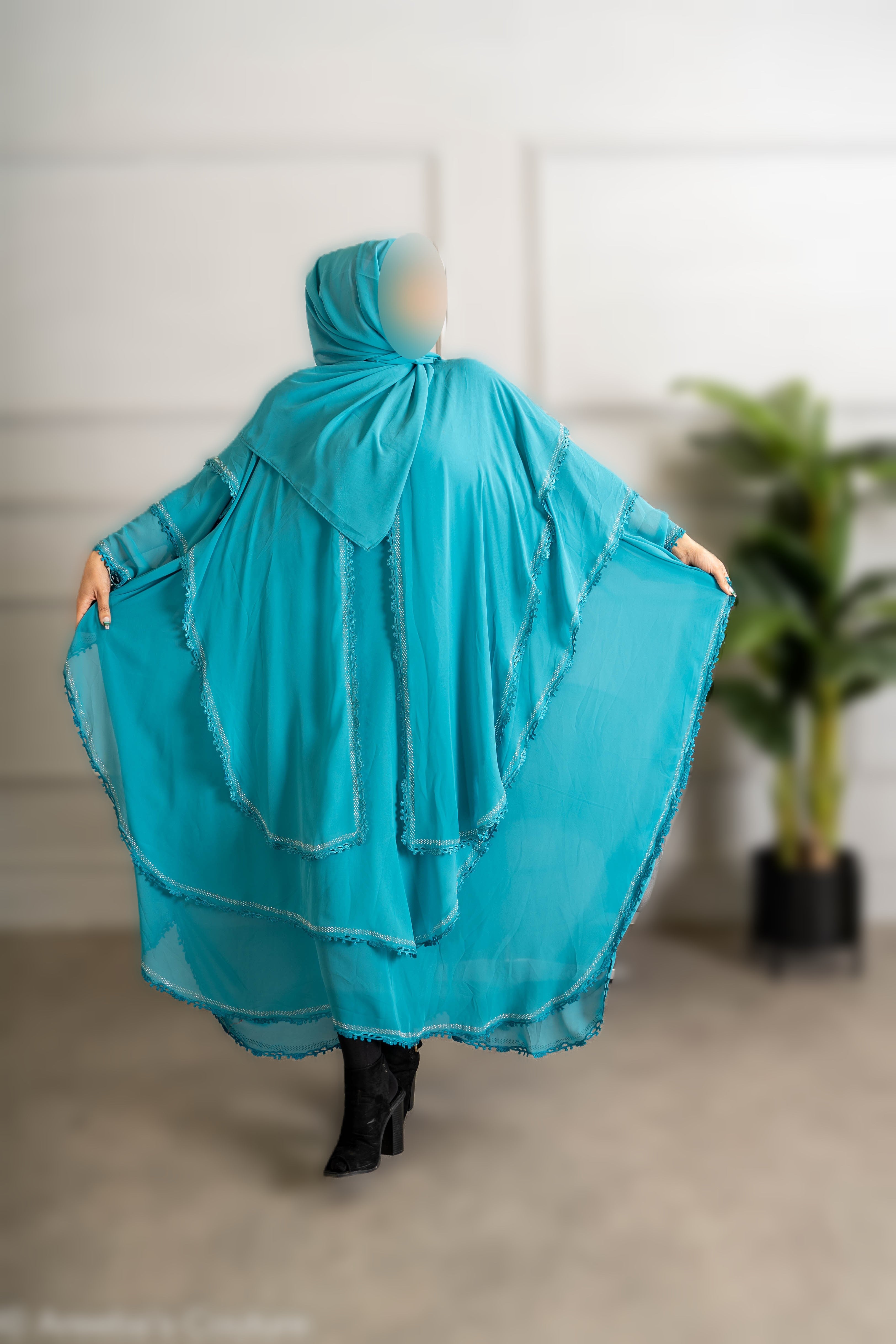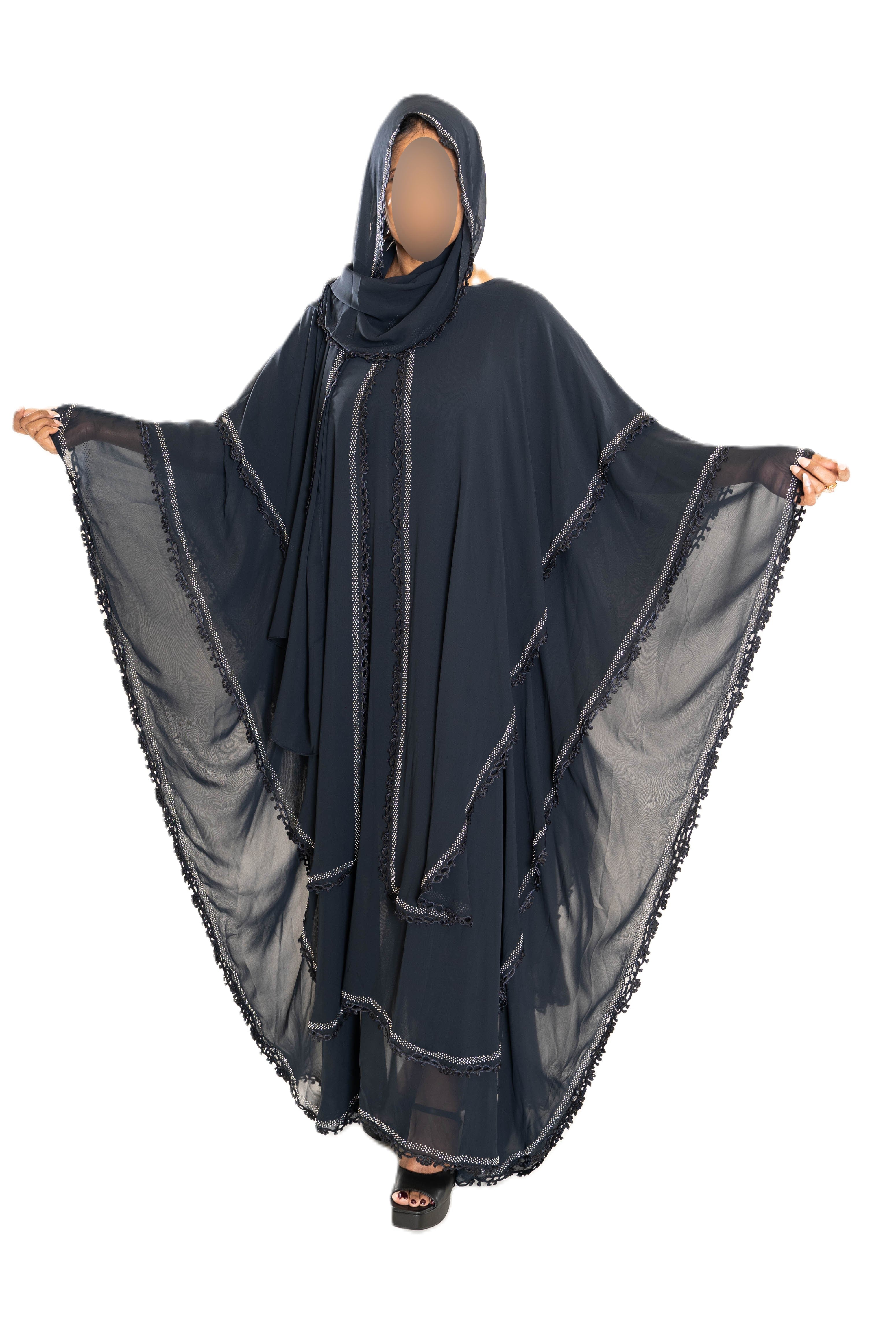 Chiffon Triple Layered Abaya with Lace - Elegant and Stylish Islamic Clothing for Women