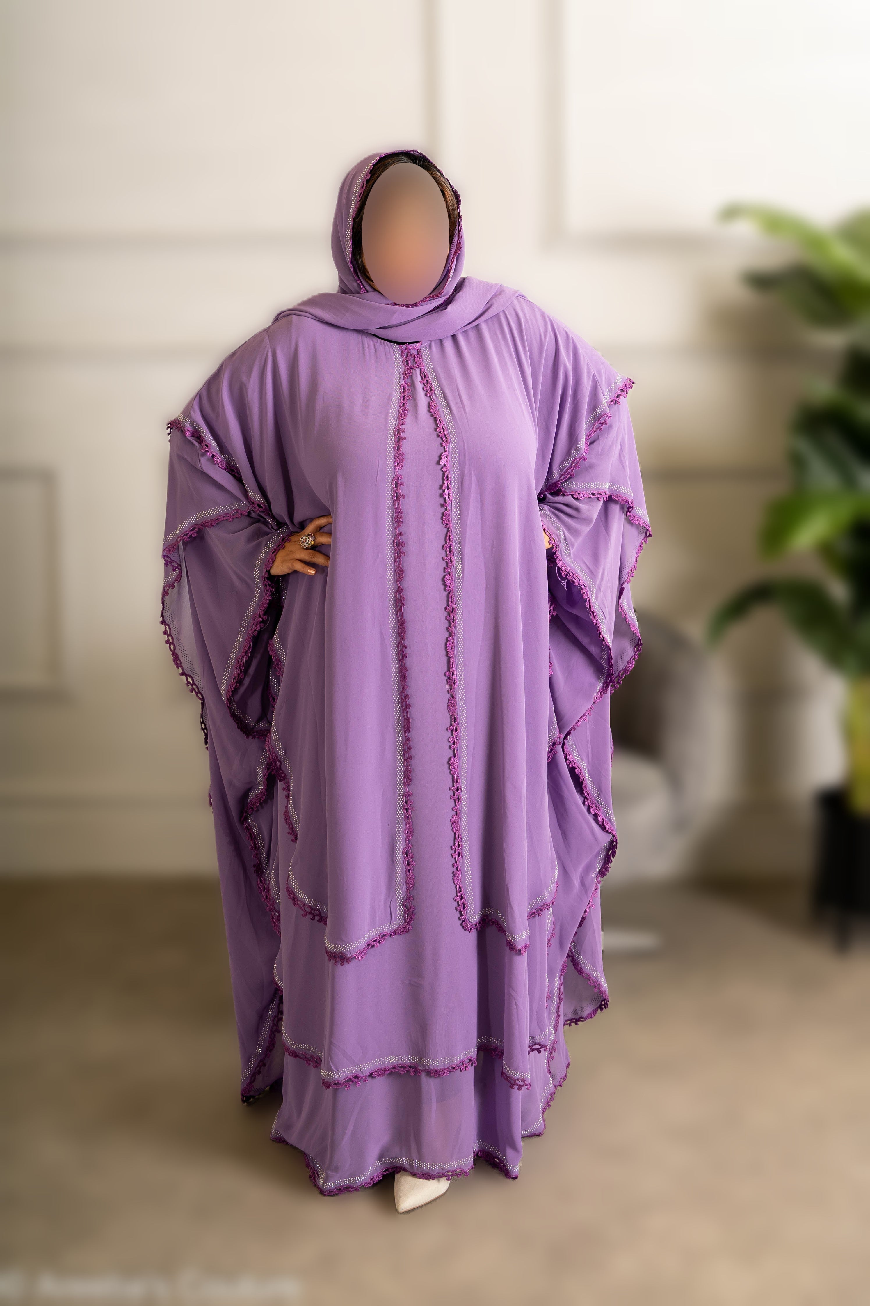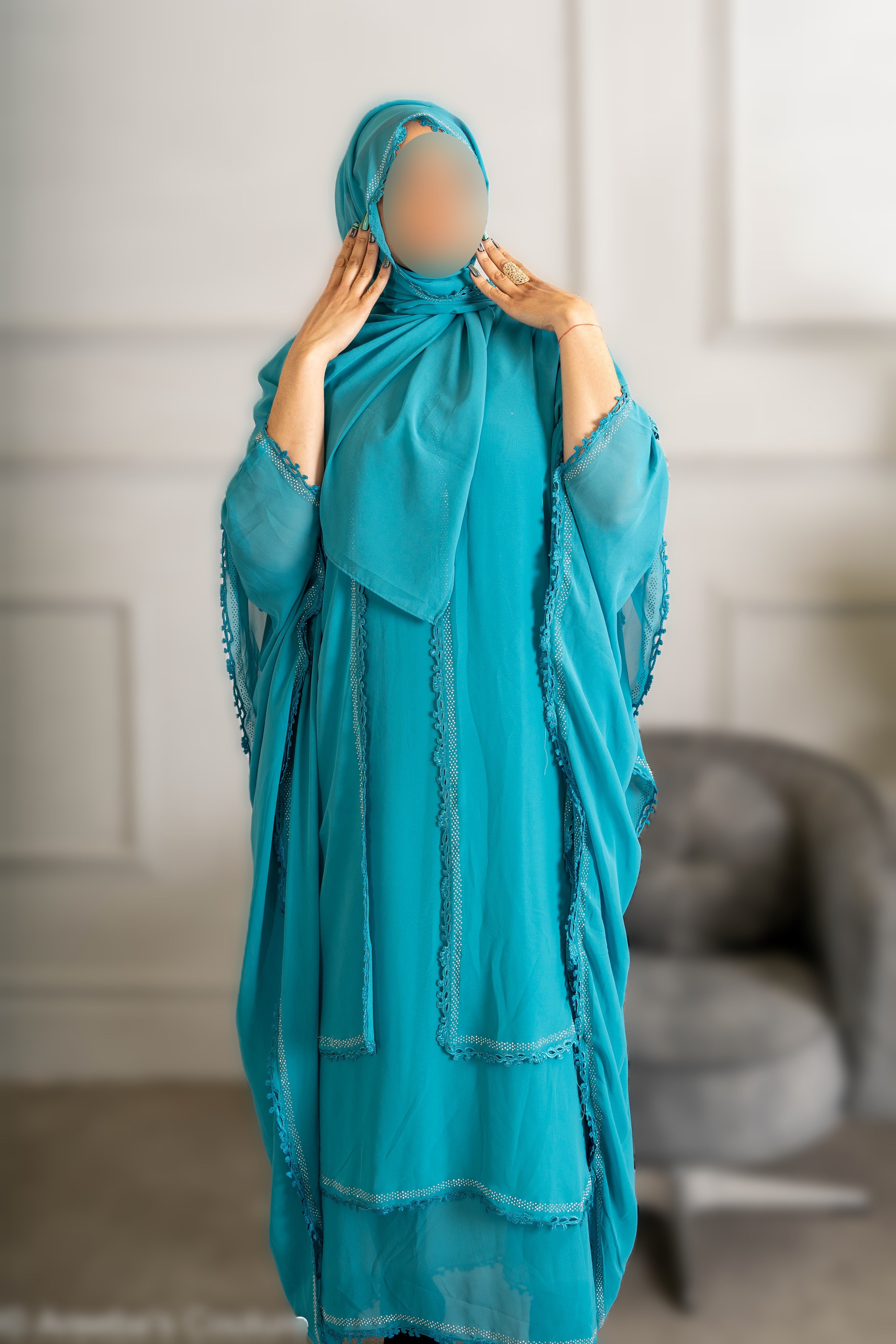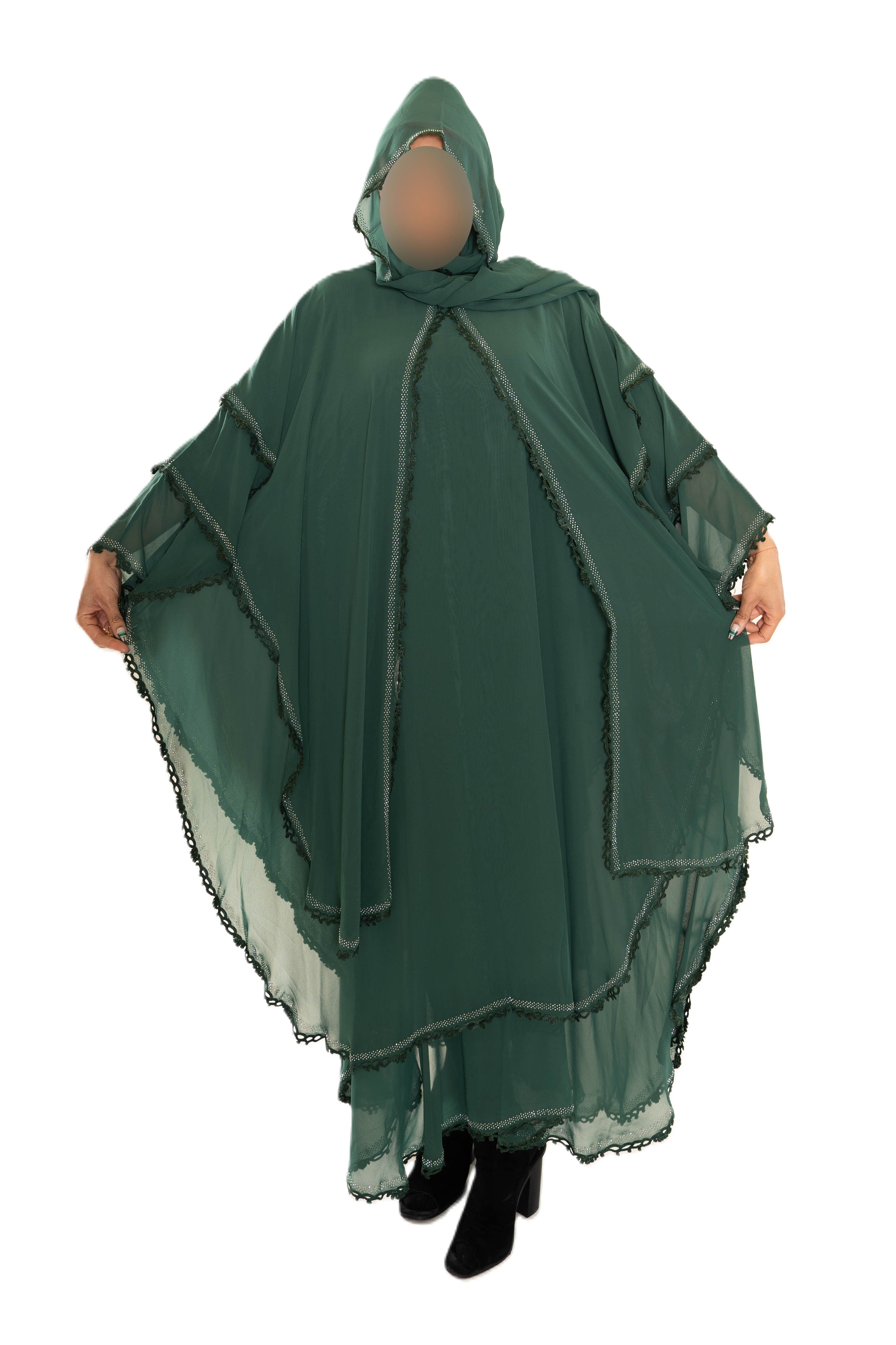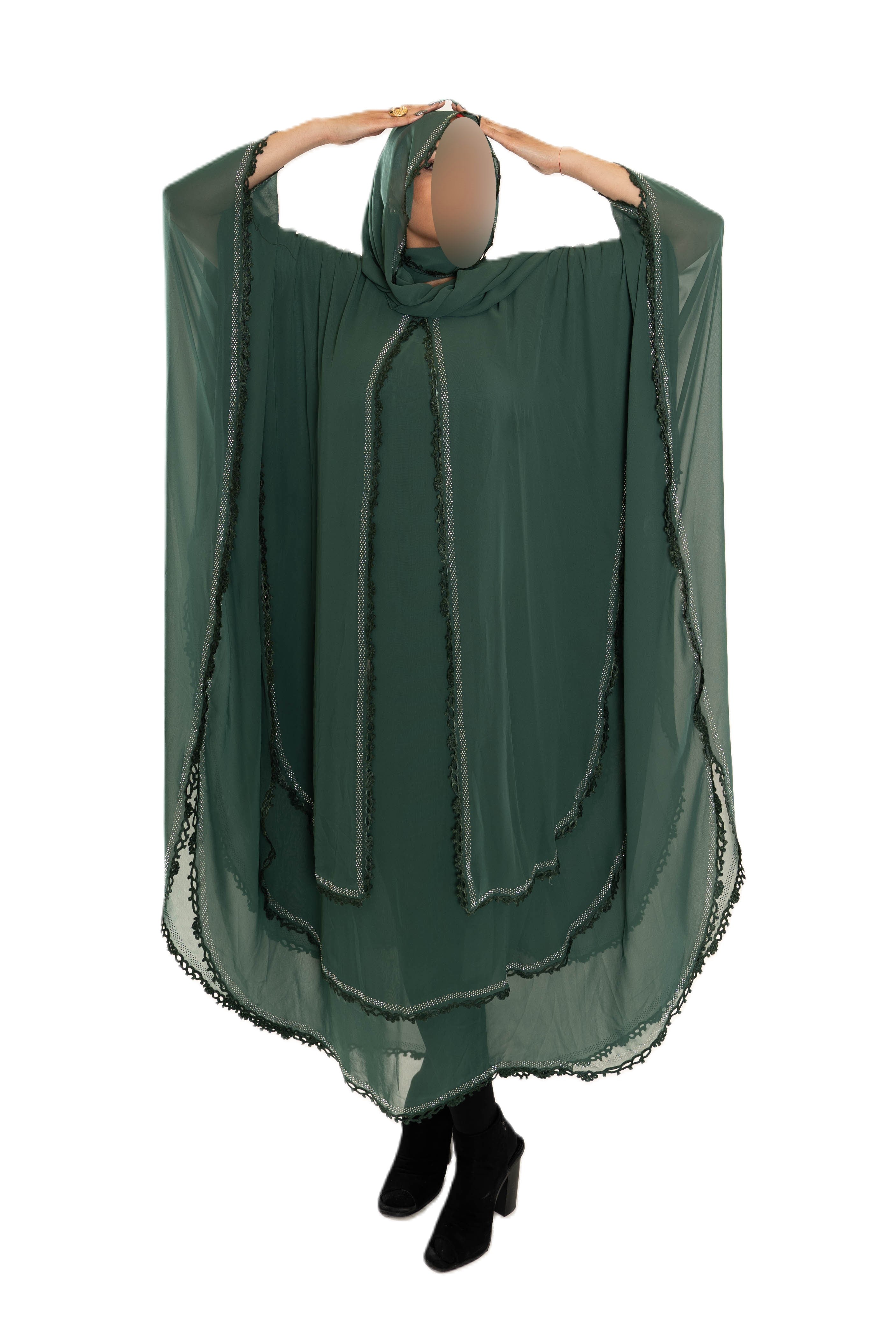 Chiffon Triple Layered Abaya with Lace - Elegant and Stylish Islamic Clothing for Women