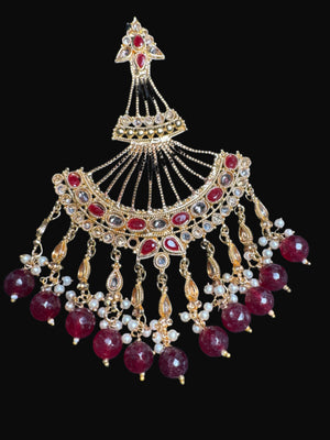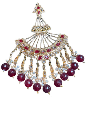 Gold colour Jhumar with maroon pearls JM05