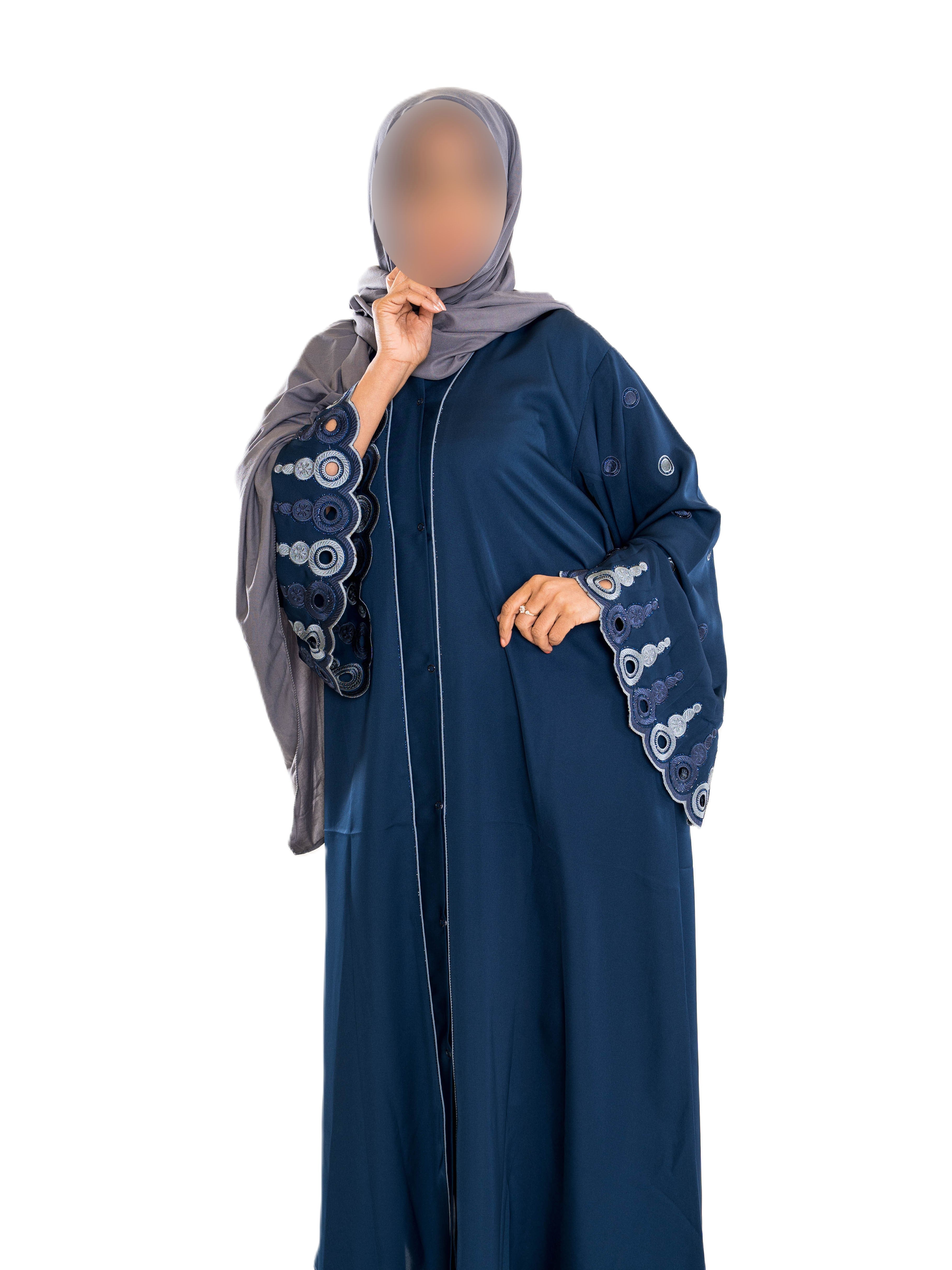 Coloured Embroidered Sleeves Abaya with Intricately Designed Richly Colored Sleeves for Modesty and Style