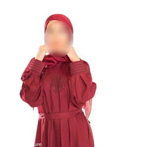 This DMC abaya features elegant cuffs, adding a touch of sophistication to your wardrobe. Made with high-quality materials, this abaya boasts both style and comfort. Elevate your fashion game with this statement piece.