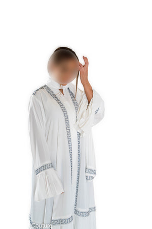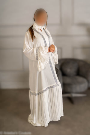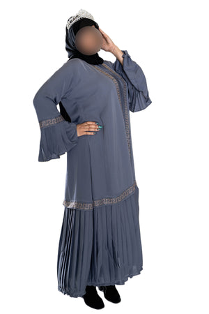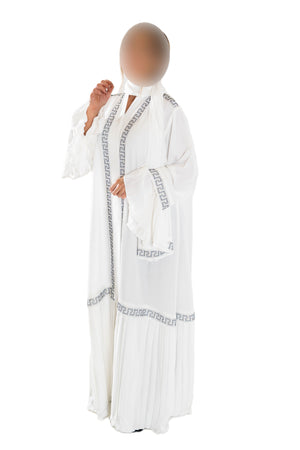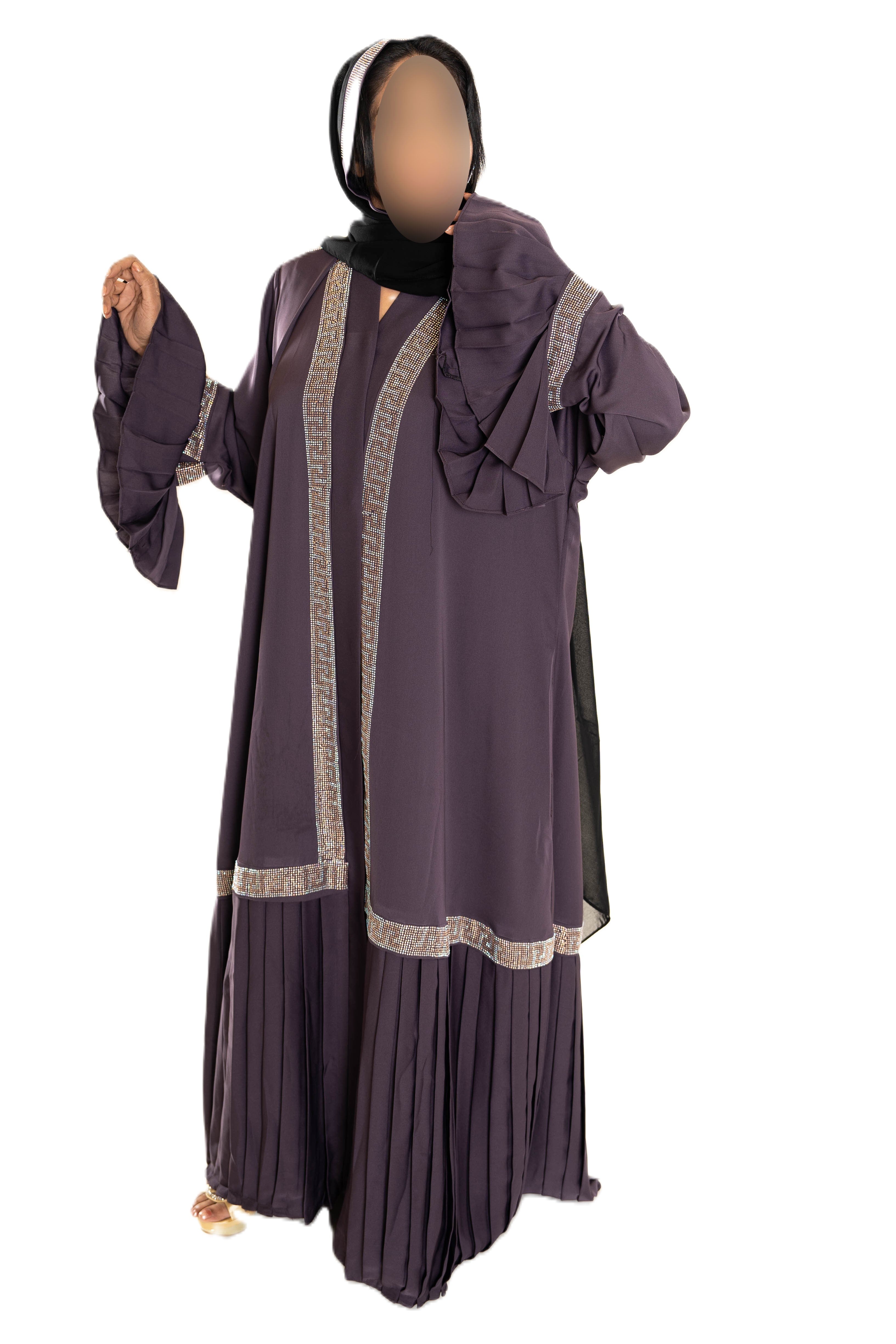 This stylish abaya features a unique double layered frill sleeve design, adding a touch of elegance and sophistication to your look. The layered design provides a flattering silhouette and a flowy, airy feel, making it perfect for any occasion. Made with high-quality fabric for maximum comfort and style.