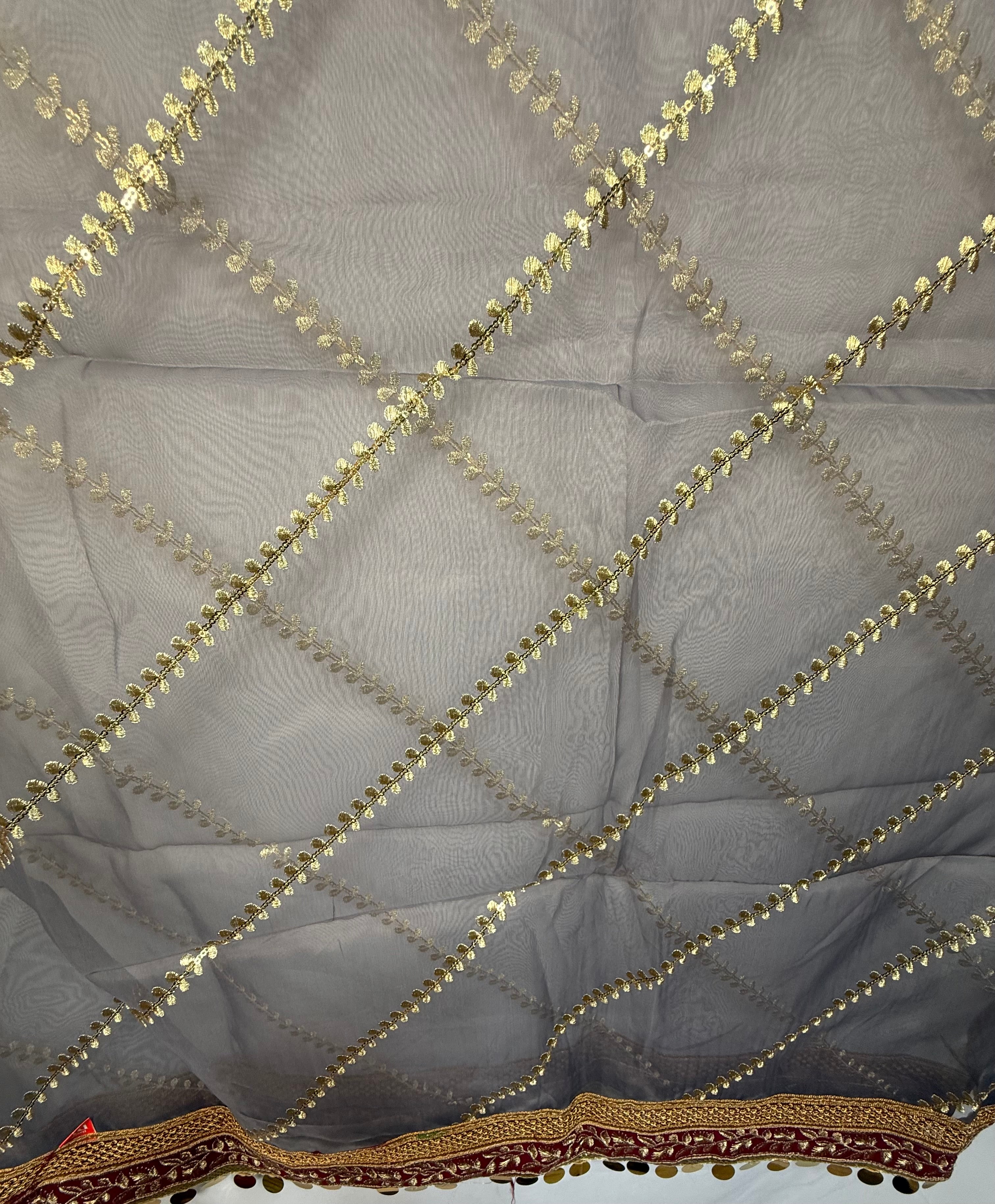 Grey Colour Organza Duptta With Embroidery And Coin Lace By Areeba'S Couture