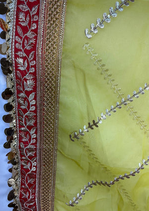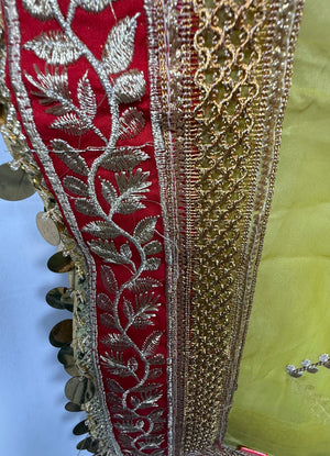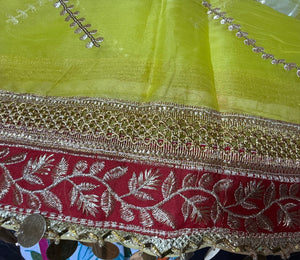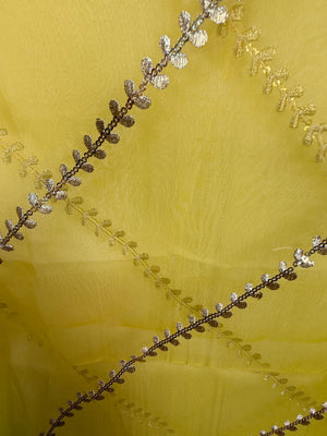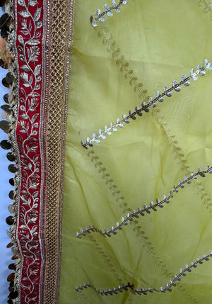 Lime Green Colour Organza Duptta With Embroidery And Coin Lace By Areeba'S Couture