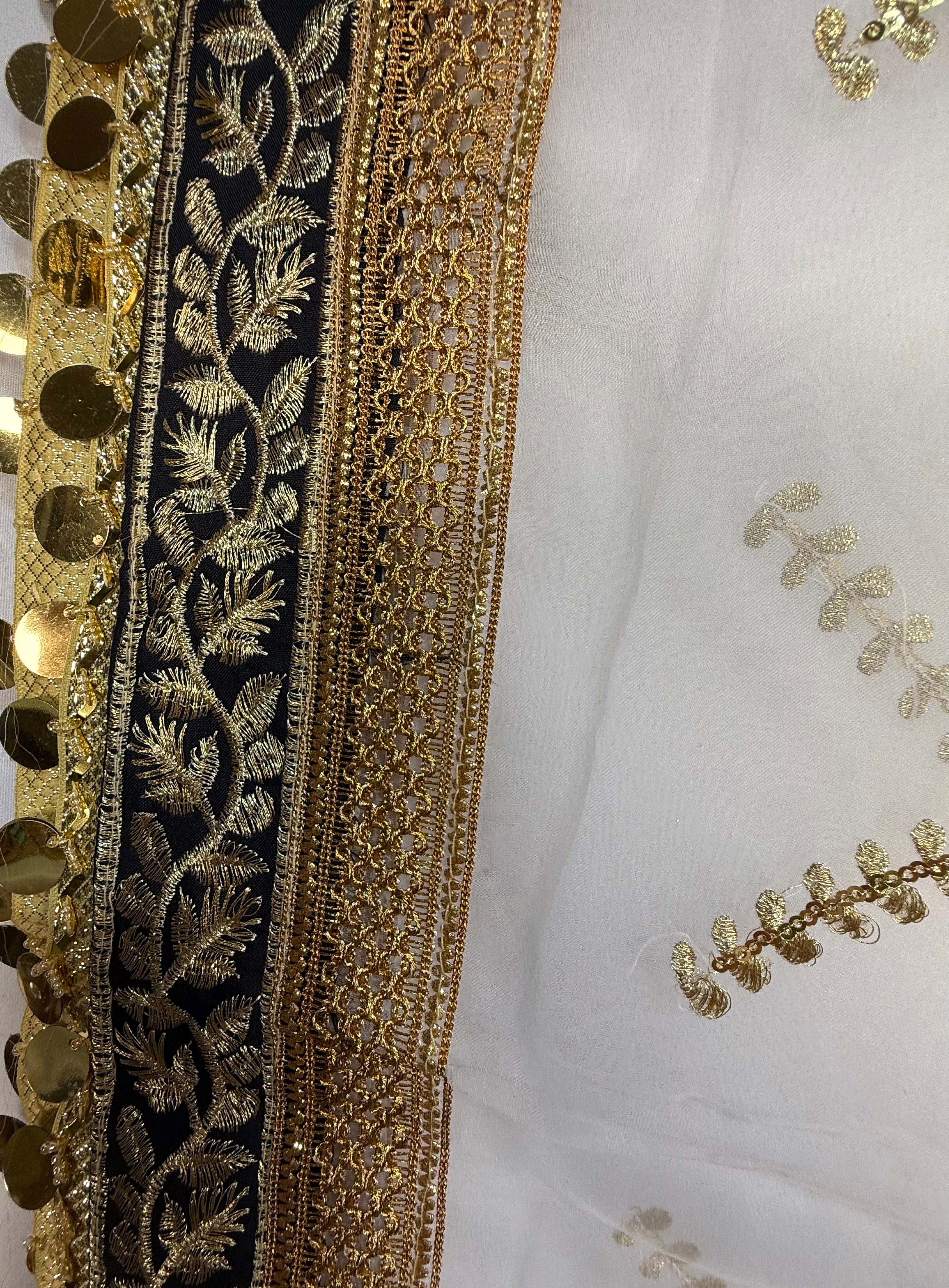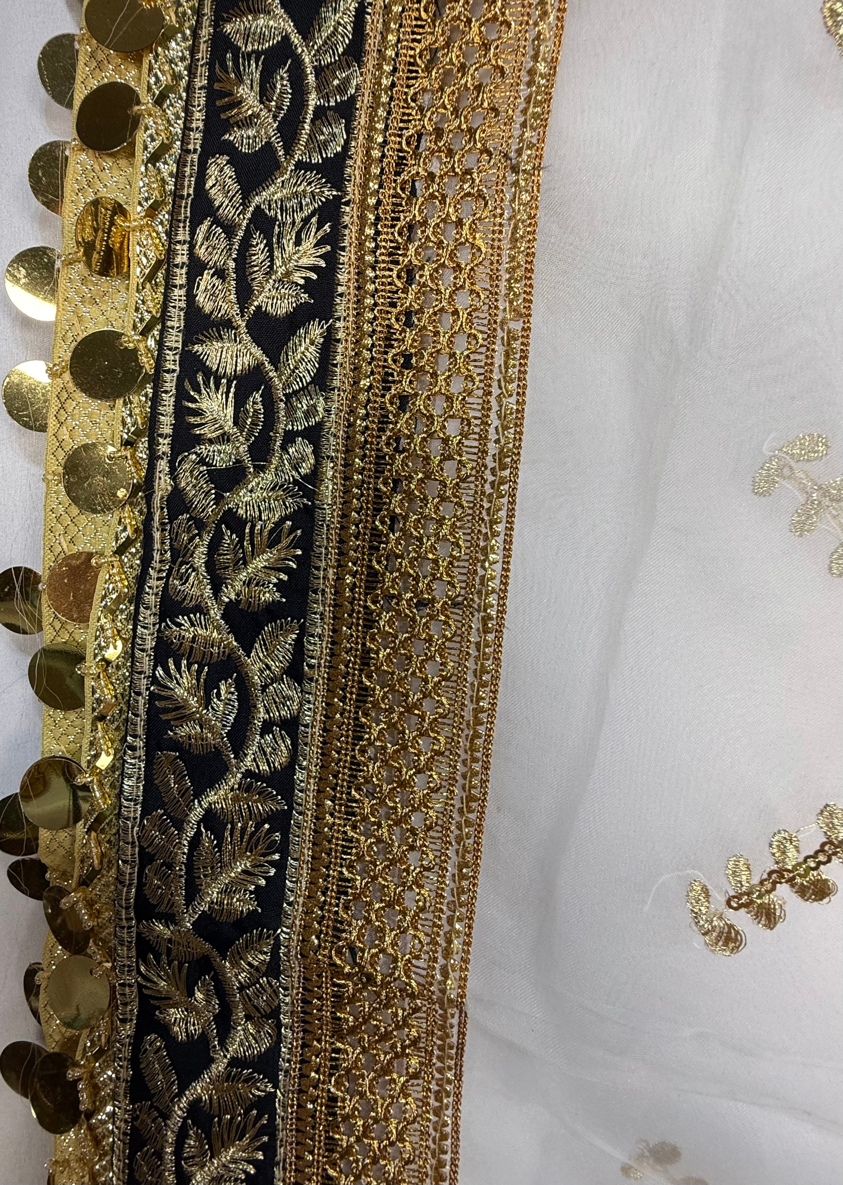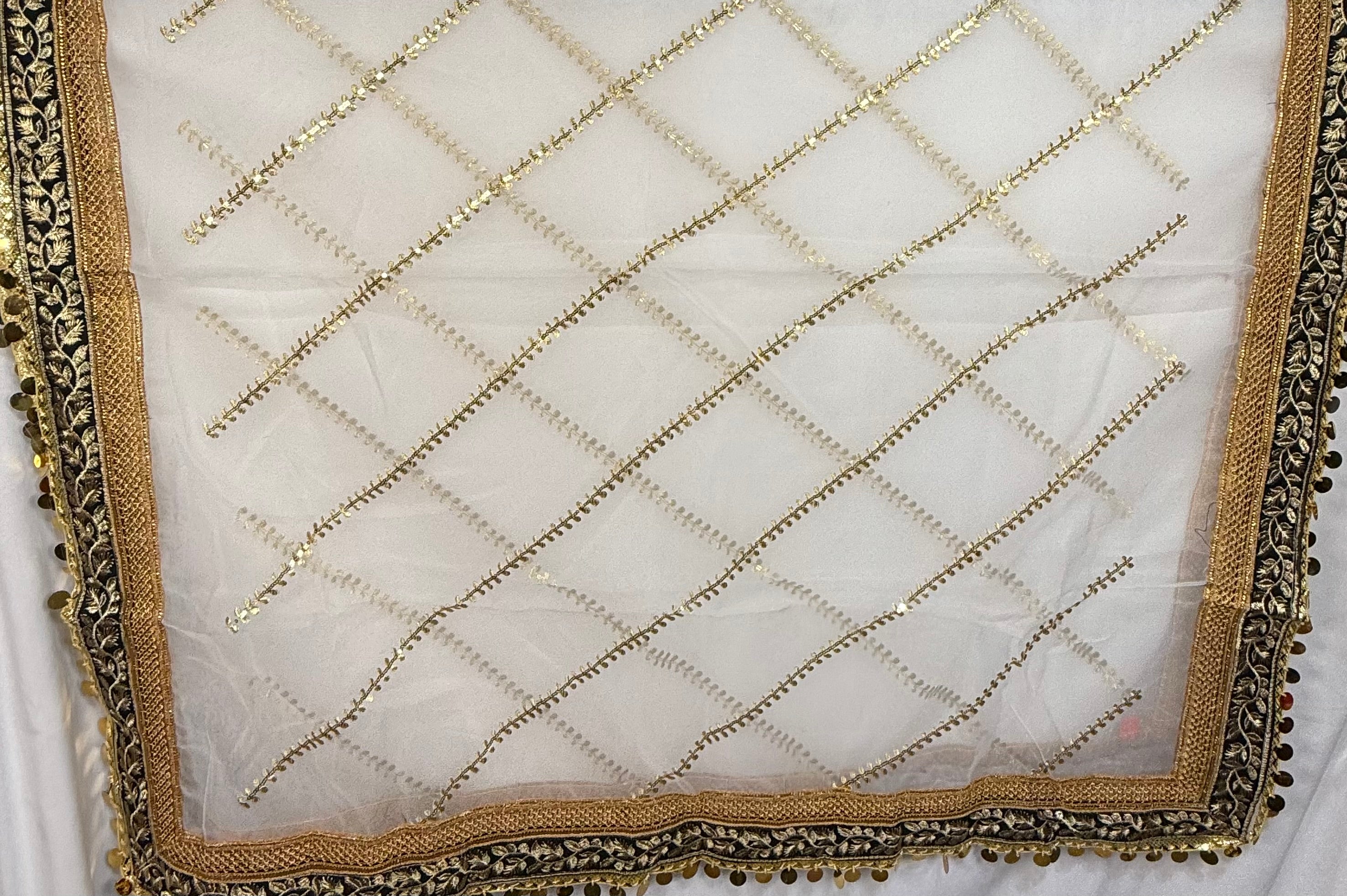 White Organza Duptta With Embroidery And Coin Lace By Areeba'S Couture