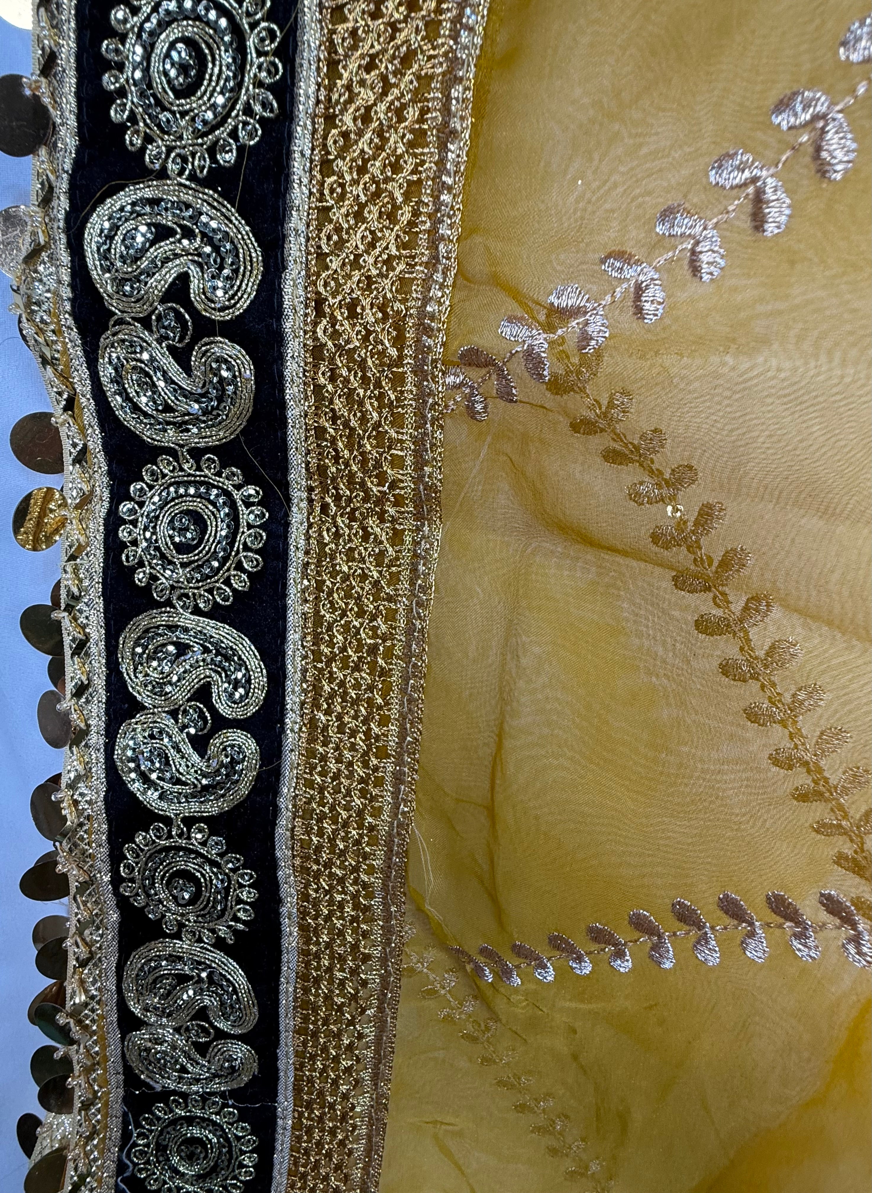 Mustard Organza Duptta With Embroidery And Coin Lace By Areeba'S Couture