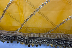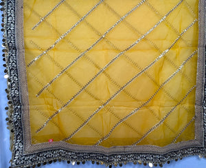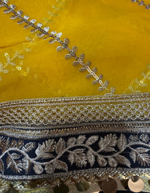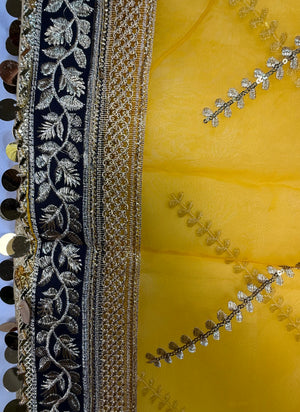 Yellow Organza Duptta With Embroidery And Coin Lace By Areeba'S Couture