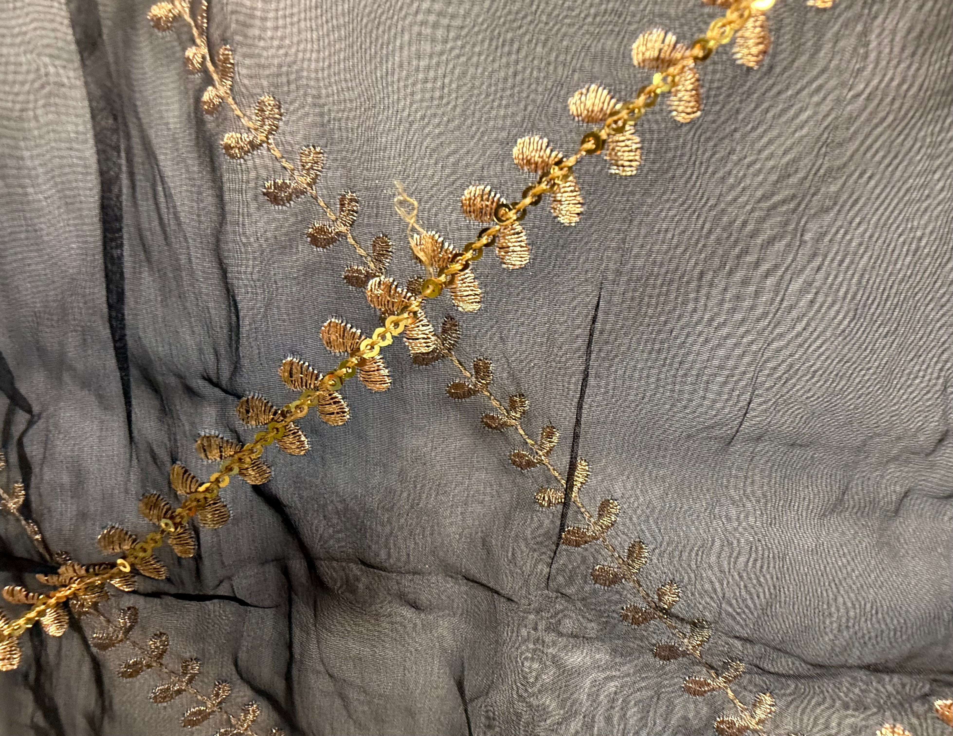 Royal Blue Organza Duptta With Embroidery And Coin Lace By Areeba'S Couture
