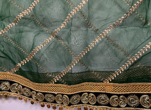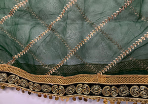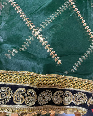 Bottle Green Organza Duptta With Embroidery And Coin Lace By Areeba'S Couture
