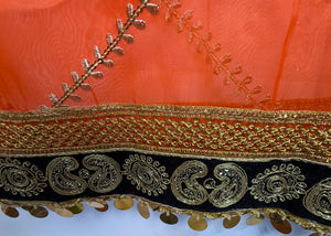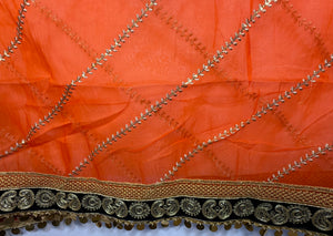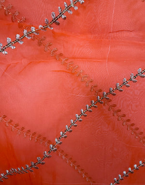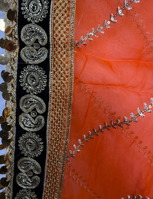 Orange Organza Duptta With Embroidery And Coin Lace By Areeba'S Couture