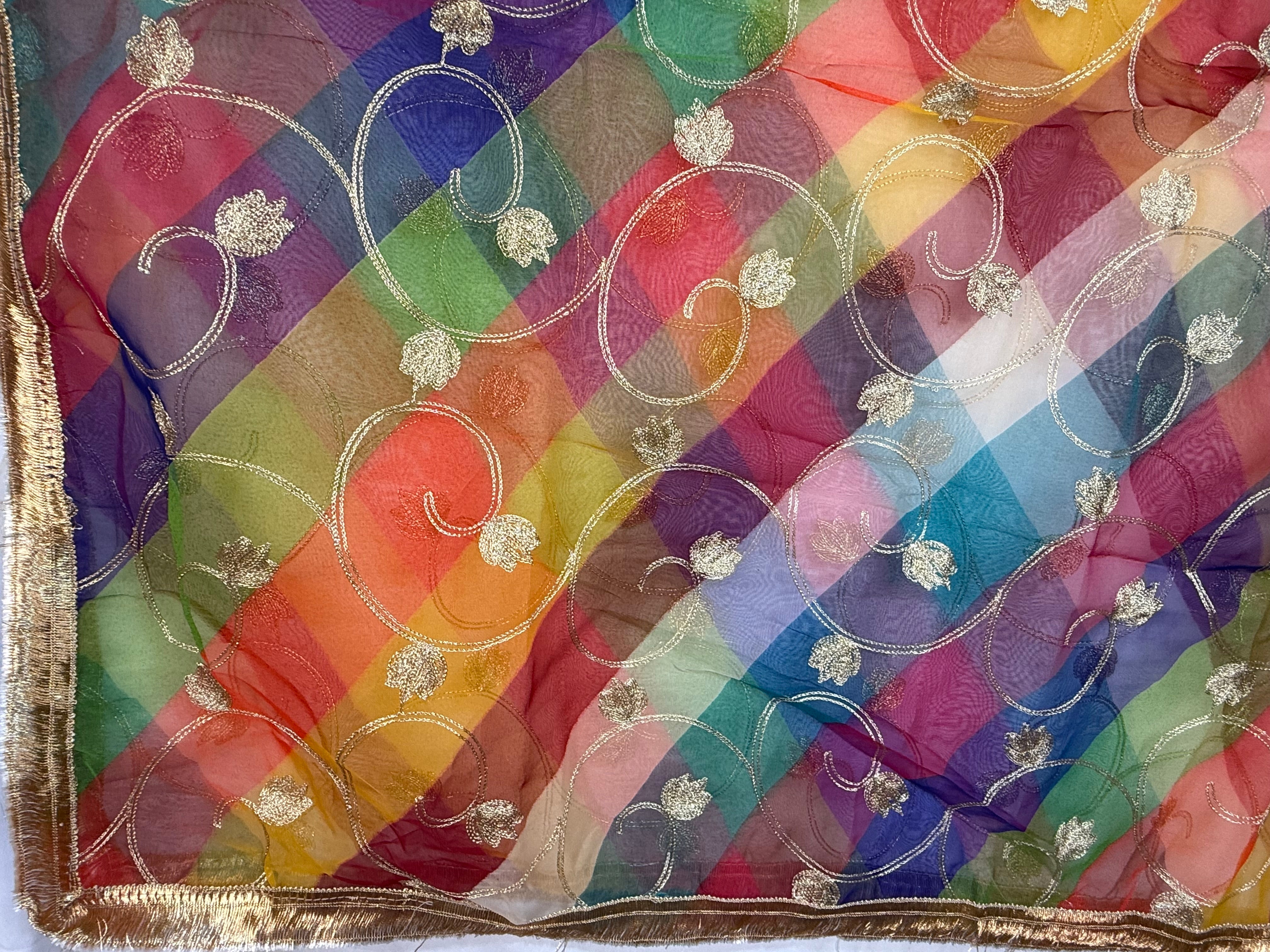 Dupptta Organza Multi Colour With Golden Embroidery Work Dcg-8