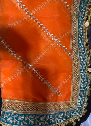 Orange Colour Organza Duptta With Embroidery And Coin Lace By Areeba'S Couture