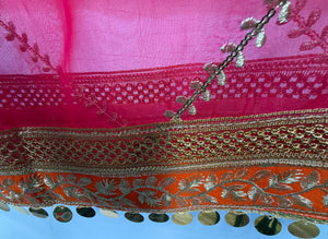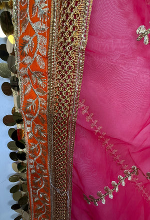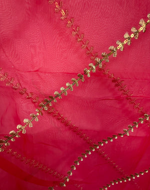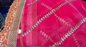 Shocking Pink Colour Organza Duptta With Embroidery And Coin Lace By Areeba'S Couture