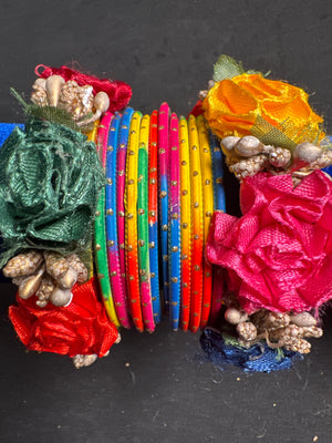 Choori and flower bangles mixed to create wonderful set to compliment your dress for any function.