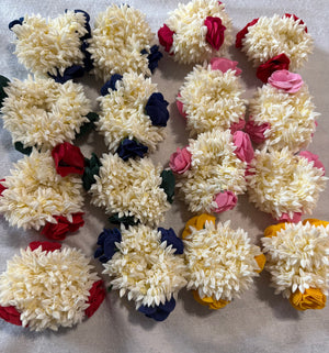 Pack of Artificial floweral gajras multicolour for use on Mehndi/Halidi occasions or casual use - Pack of 12